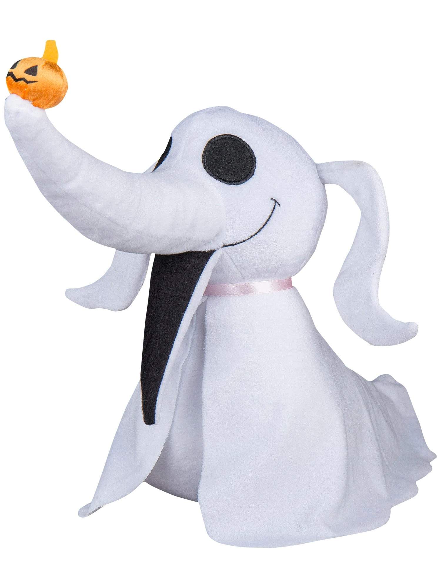 This 18-inch The Nightmare Before Christmas Zero Plush Front Door Greeter is perfect for both fans of the movie and dog lovers! This plush door greeter is 18 inches tall and features Jack Skellington’s ghost pet and best friend, Zero, with his white sheet-like body and long ears and nose. Zero’s nose has a cute little orange jack-o-lantern on top of it. Add this spooky, yet cute door greeter to your family-friendly Halloween decor and everyone will know that even though Zero is a ghost, he’s a good boy! Find more of your favorite Nightmare Before Christmas characters in our awesome Halloween decorations collection!