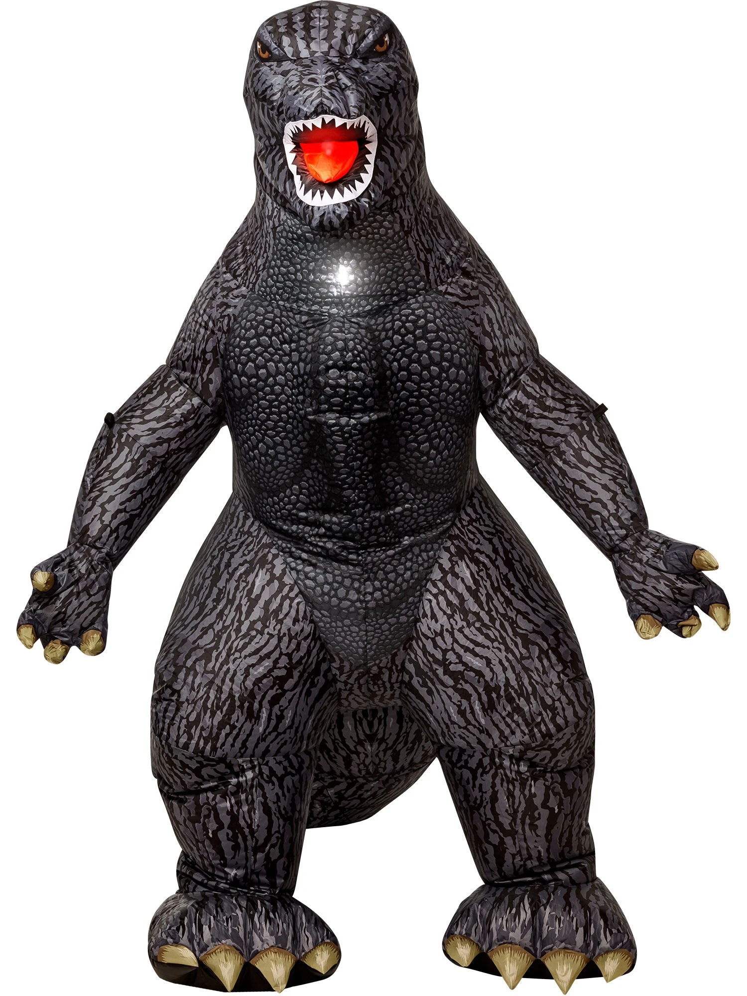 With this set, you will receive everything you need to prop Godzilla up on your lawn with ease. Featuring a massive dark skinned reptilian inflatable with giant clawed feet, wide open arms, and a ferocious mouth open expression with sharp teeth, you’re going to have a blast with this killer item. Along with the inflatable, you will also receive a heavy duty fan, ropes, and stakes, for the easiest assembly of your life. Pick up yours today, and then scan our site for the rest of your Godzilla themed decorations, costumes and more!