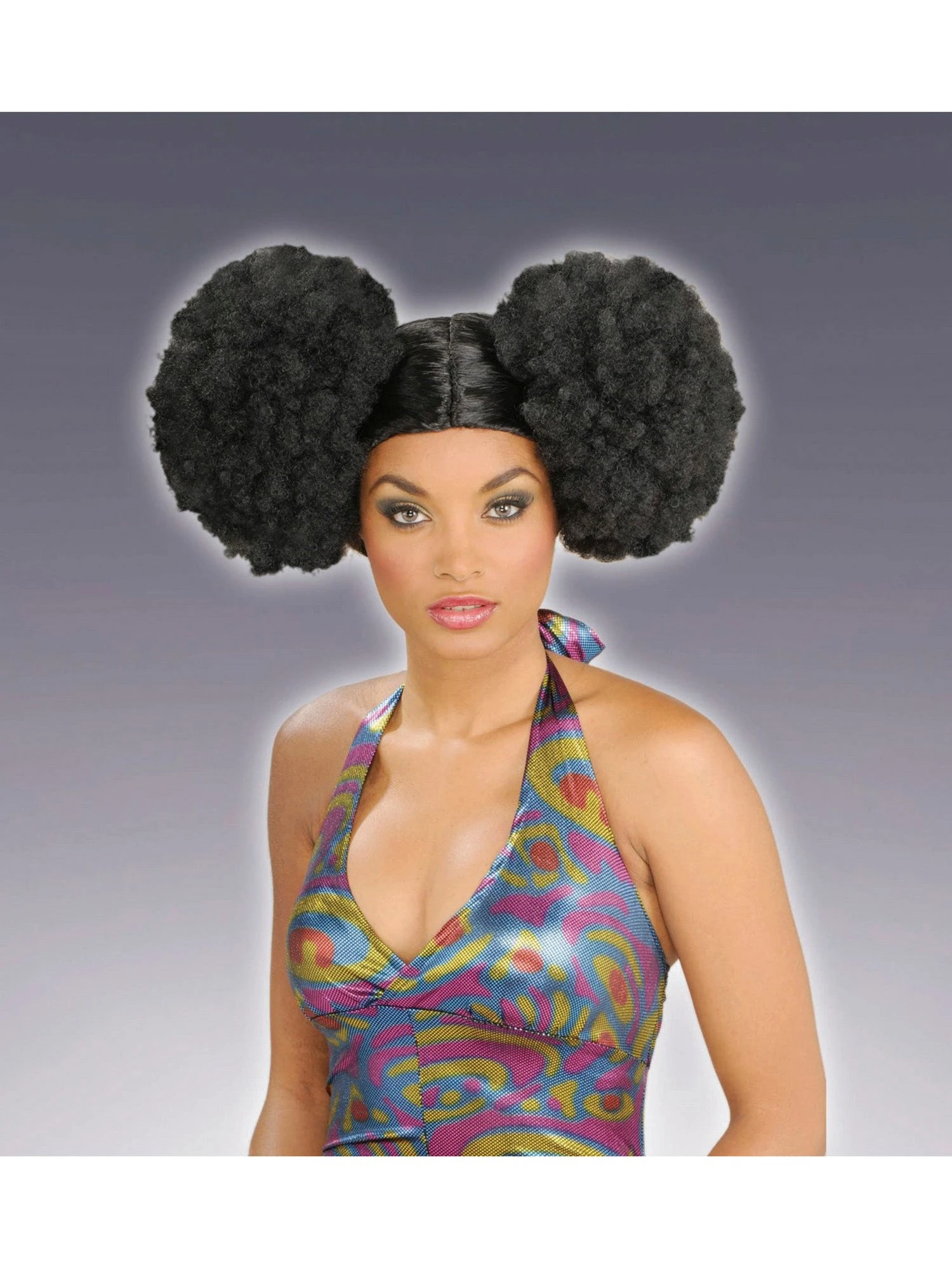 Give yourself a funky, fresh look using our Puff Afro Wig. This item is a great way to show off a stylish, yet 60s or 70s appearance. It features large, puffed hair on both sides while the middle is combed. It perfectly matches the era where you can boogie all night long. Coming up with a disco dancing ensemble will be easier thanks to this. Throw on your favorite jams and strut your stuff on the dancefloor.