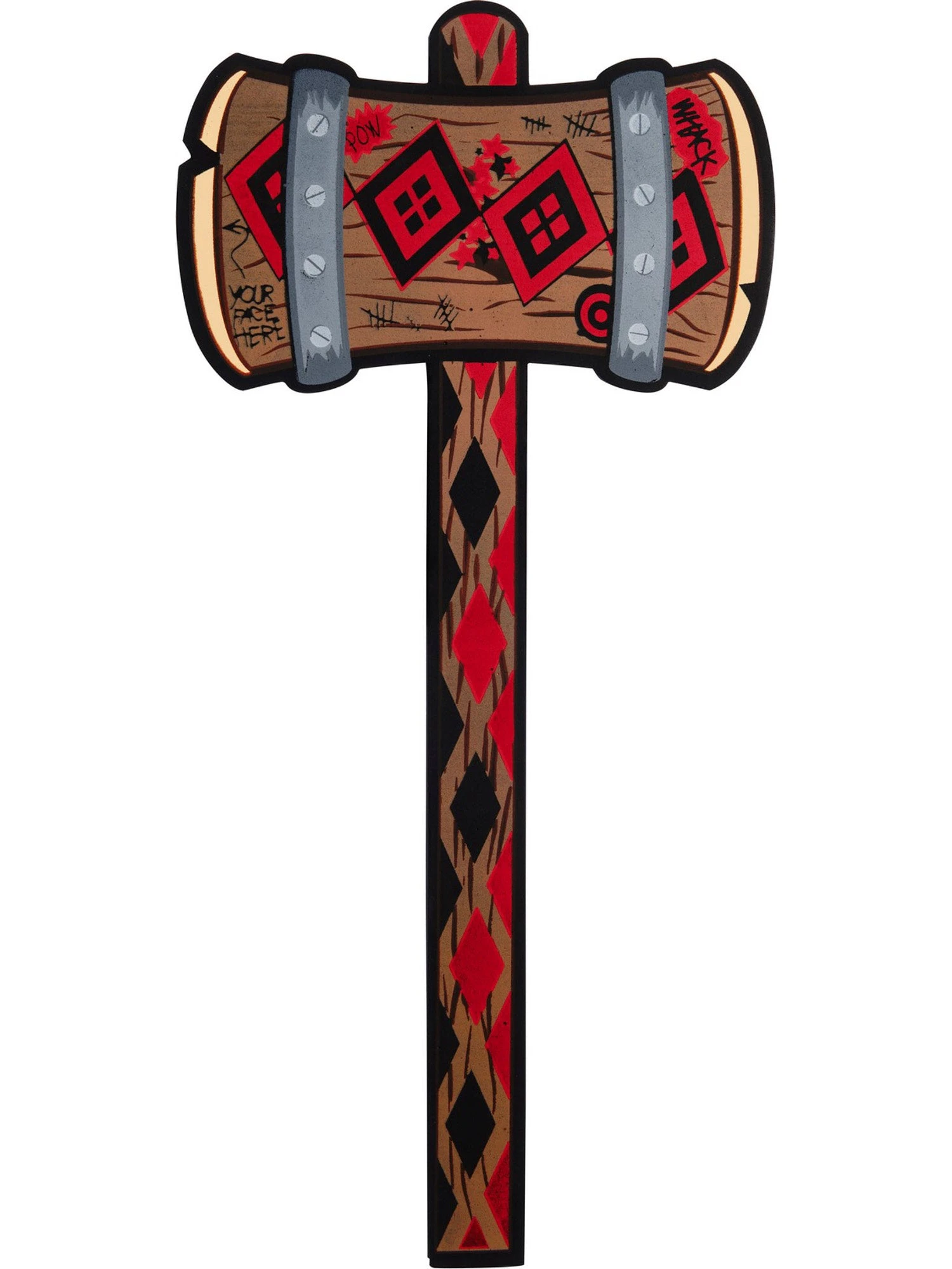 You can take out any enemy of the Suicide Squad this Halloween when you have this DC Comics Super Villains Harley Quinn Mallet Accessory! When youre hammering your foes with this mallet, youre going to be one of the most ferocious inmates at Arkham Asylum. This mallet comes with the logos of Harley Quinn on each of the hammering surfaces, so the last thing people see when you hit them with this is the symbol of your favorite superheroine!