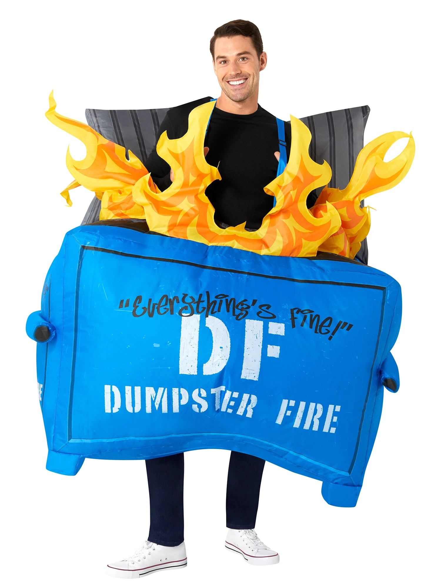 Get ready to light up the party and embrace chaos with our Adult Dumpster Fire Inflatable Costume. This unique set guarantees you’ll steal the show and crack up your friends from the moment you enter the room. Featuring an inflatable blue dumpster costume with flames emerging from the top, you’ll showcase your readiness for mischief and hilarity. Instantly become the life of the party with this outrageously funny get-up. Don’t miss out on the opportunity to turn the night into a memorable dumpster fire of laughter and joy!