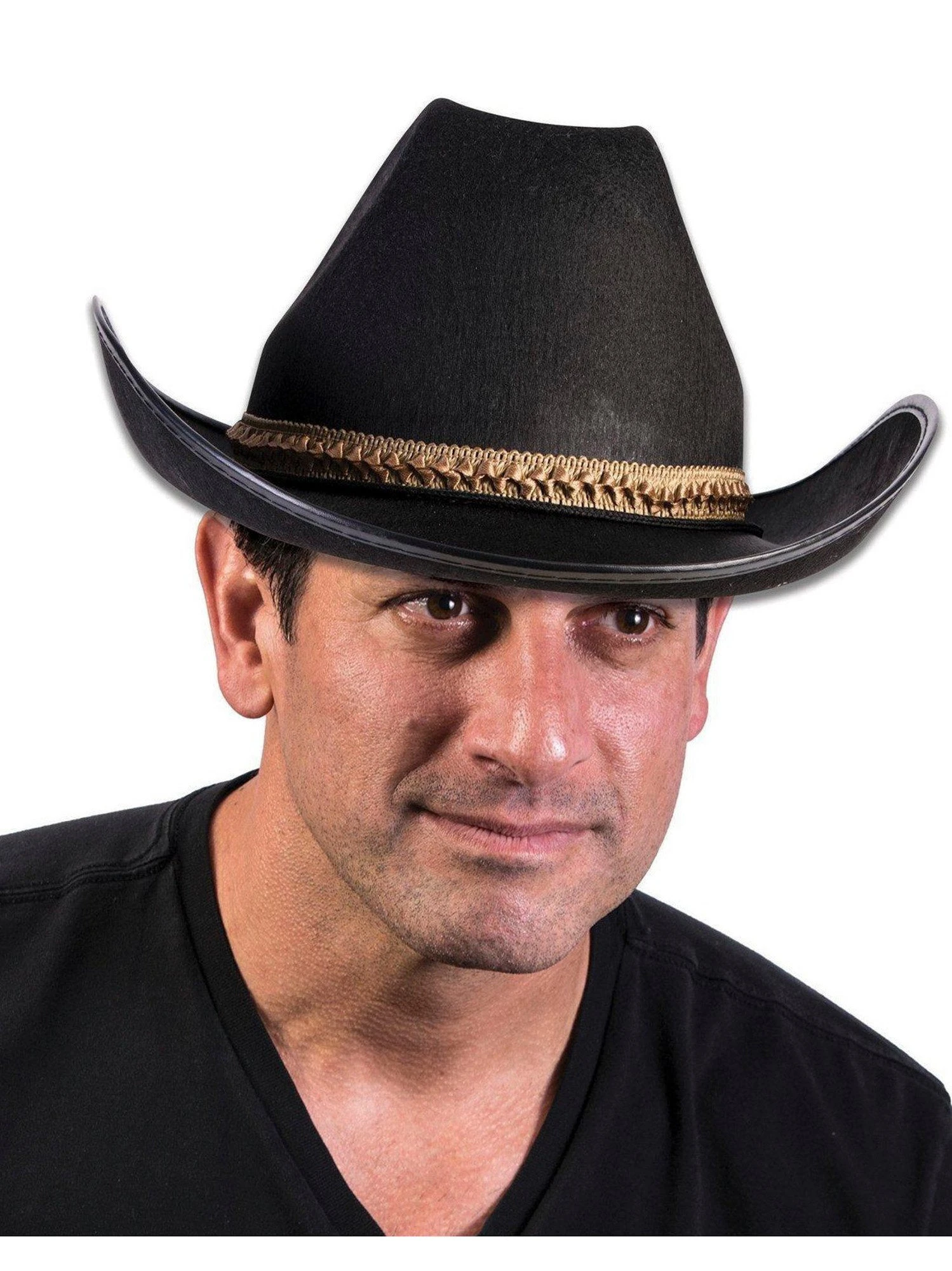 Top off your cowboy look this Halloween with the Felt Cowboy Hat. This cowboy hat is perfect for theatre, cosplay, or costume parties. The felt hat will bring an authentic look to any wild west character you are looking for. The black felt hat features a copper design embroidered right into the fabric. Keep the sun out of your eyes with wide hat brim. Lasso up the cattle and get ready to be home of the range this Halloween and order the Felt Cowboy Hat today!