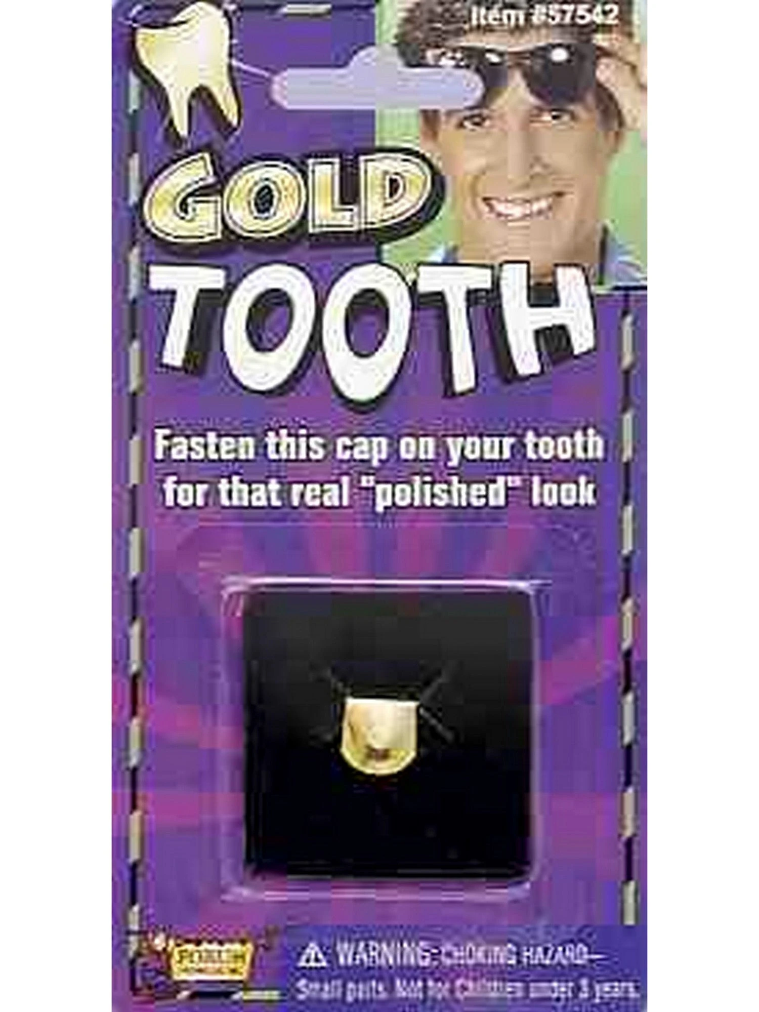 Add some bling to your Halloween costume this year! Purchase the Faux Gold Tooth to show off your style. The gold tooth cap is easy to apply and it is easy to remove. Flash smiles all night long to show off your newest accessory. Pair this tooth with a suit and a fedora for a gangster inspired costume!