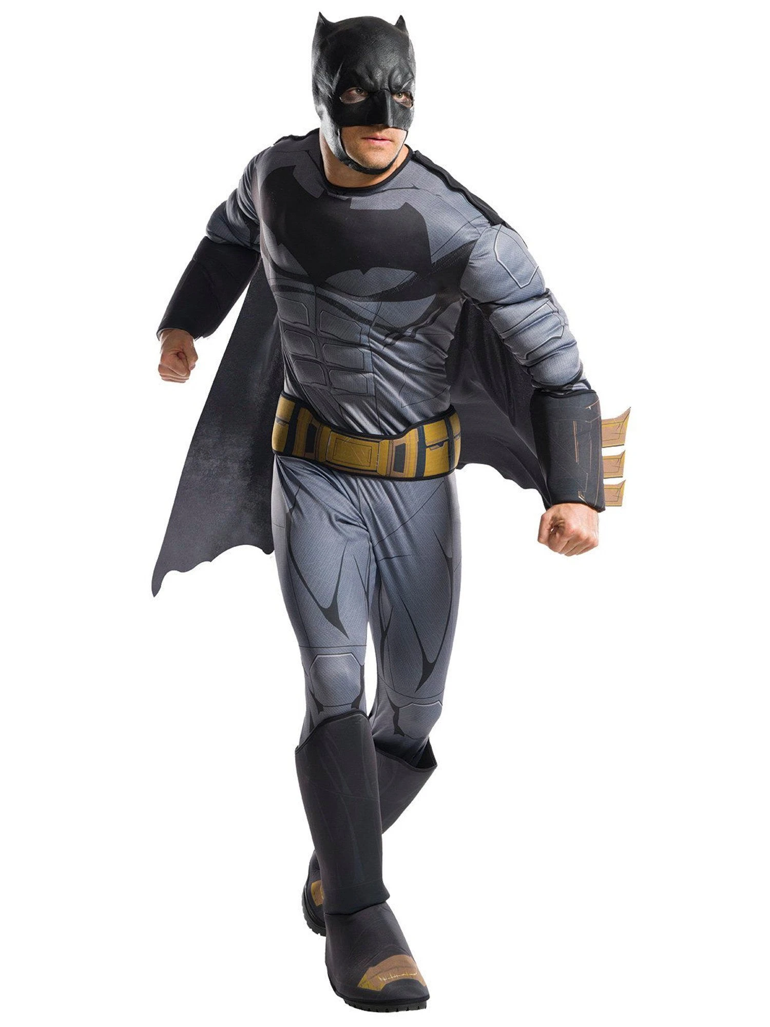 Give the bad guys a reason to be afraid of the dark with the Deluxe Batman costume. Mirroring Batman’s tactical suit from the Justice League film you too can feel the power of the masked vigilante. Bruce Wayne’s new grey toned suit will improve agility. The only bulk comes in the form of the imbedded muscle padding sure making you look tougher than ever before. A golden utility belt and bladed gauntlets will prepare you for the stickiest of situations. Assume the bat identity with the pointed mask and billowing black cap that offers cover in the dark. Hide your shoes with the boot tops and assume the full identity of Batman! Don’t forget to add batarangs to your order as well. Bring down the evil Steppenwolf and purchase your batsuit today!
