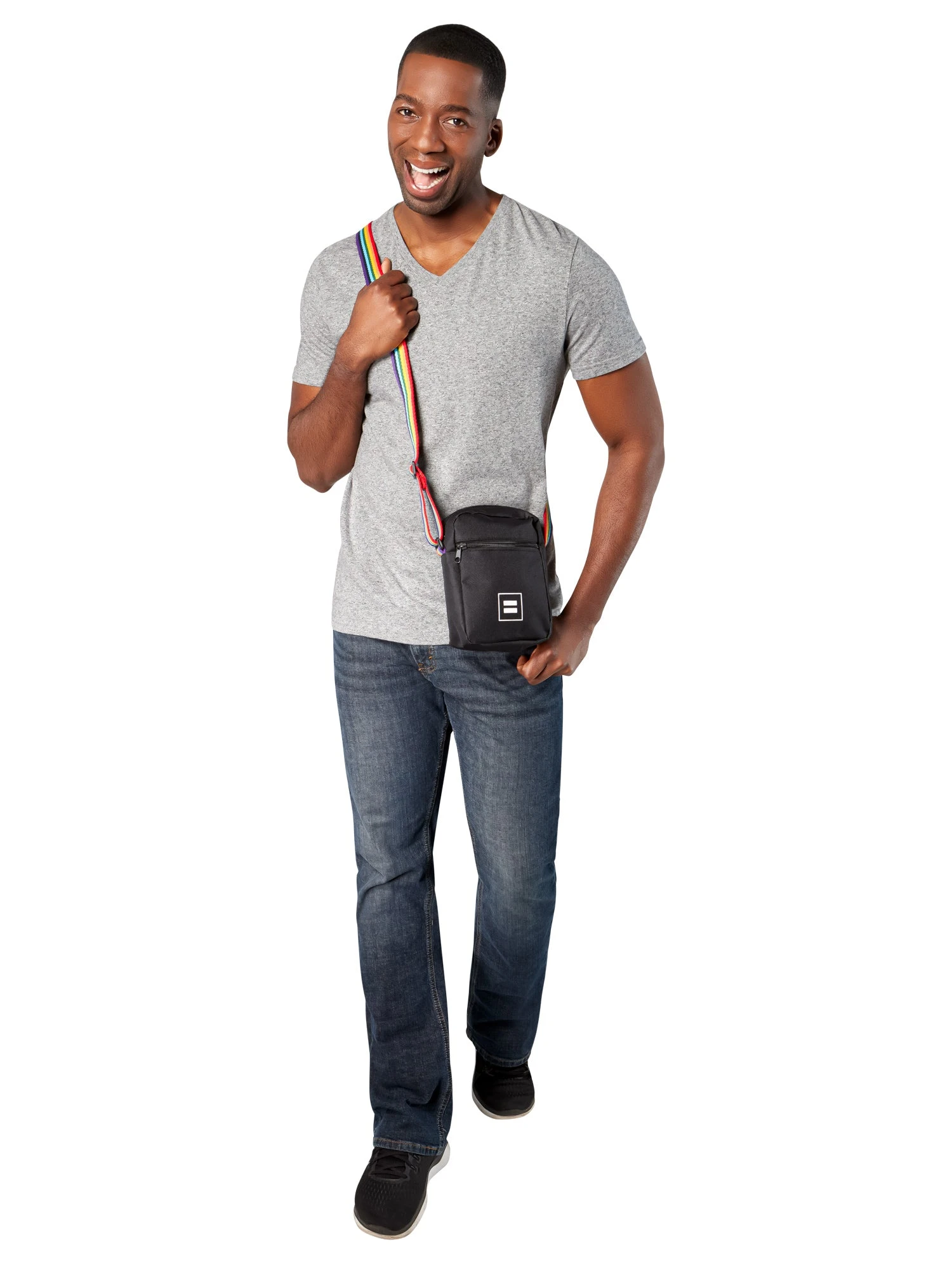 Head to the Pride event in style this year when you accessorize with our Adult Rainbow Pride Crossbody Bag. With this colorful item, you will receive just the bag you need to show your stance on love and equality all while looking flashy and shnazzy as ever. Featuring a black crossbody bag with a fun multi-colored strap, you bet everyone will be taking notice of your fashion sense when you’re sporting this one. Pick up yours today, and then check our site for the rest of your rainbow themed attire!