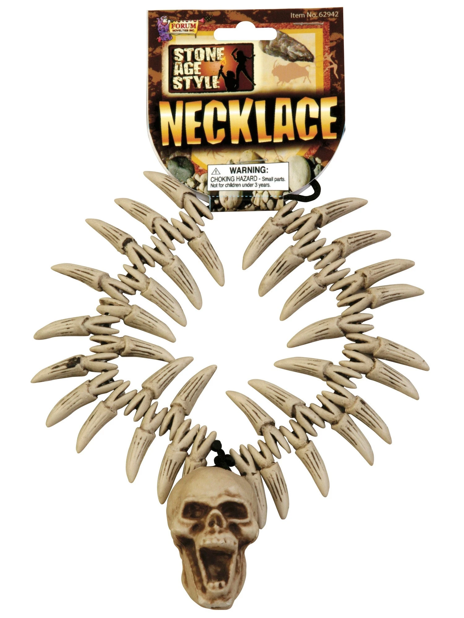 Halloween of long ago past was a more dangerous time were certain. Thats why we offer our Savage Necklace featuring teeth and skull for protection against hostile tribes. Take a stroll on those newly acquired two legs and check out this detailed and unusual costume piece that is perfect for any primitive man looking to enter society. Keep the wild edge on however, with this delightfully decorative necklace that is sure to impress, just make sure your worthy of wearing it!