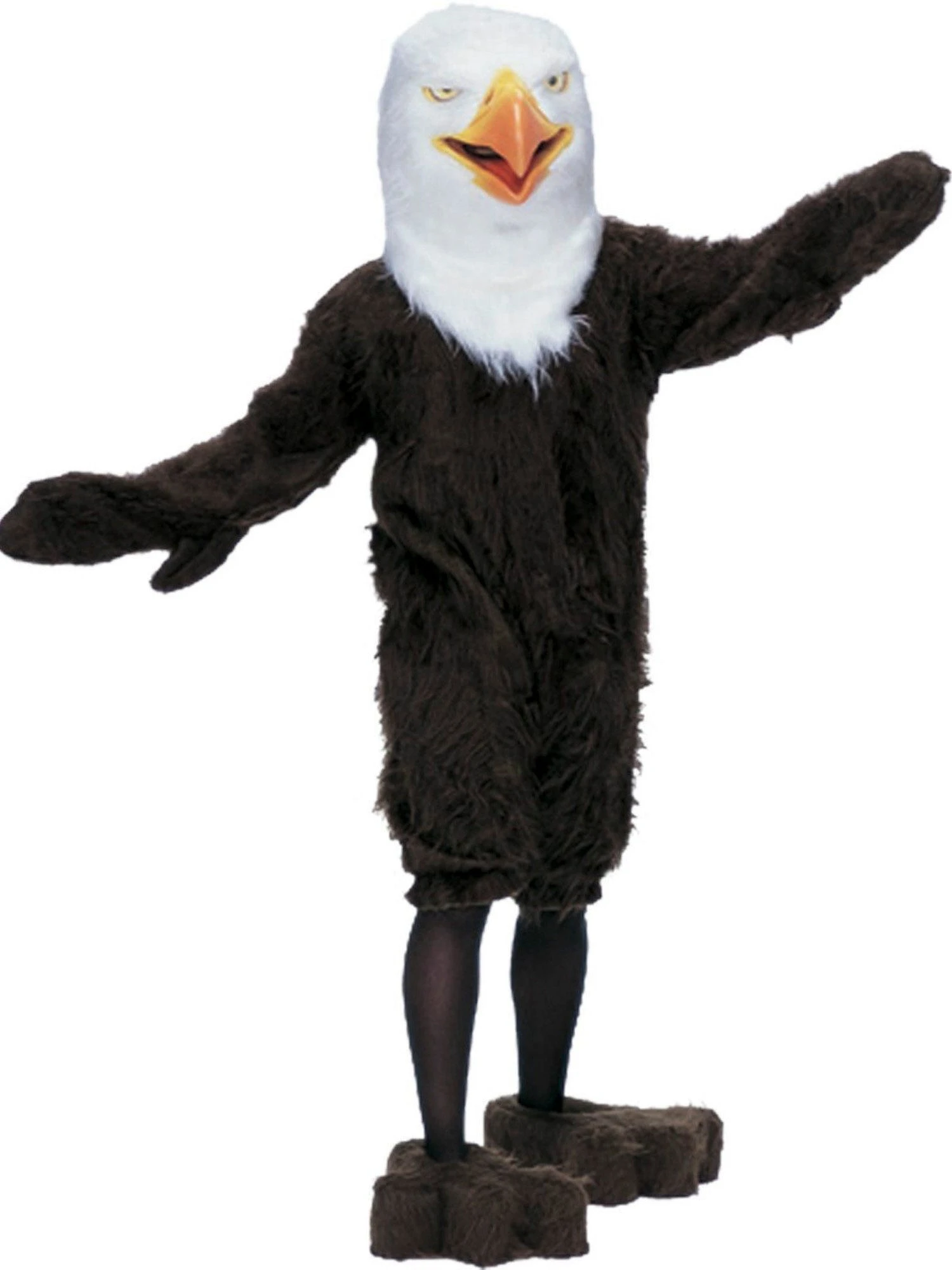The American Eagle Mascot costume includes a plush bodysuit, mitts, and spats. An oversized eagle mascot head with a beak is also included with this costume. Eagles are known for their high flying capabilities, exceptional vision and tenacious nature. When you wear this costume you will represent the qualities of an eagle. Your team will soar high and win when you wear this inspiring eagle costume. Boosts your school’s team spirit and pride when you wear this costume.