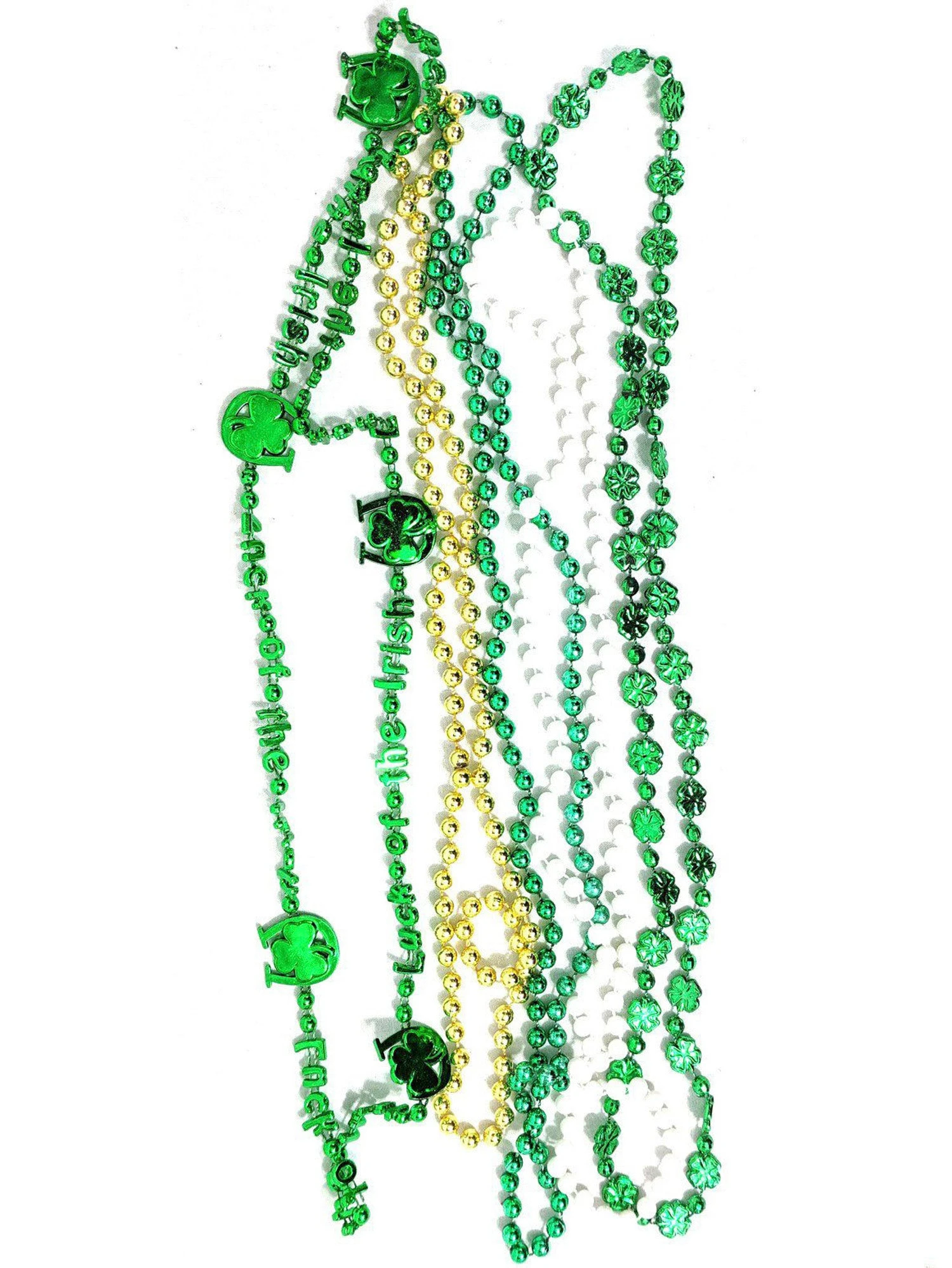 Looking for the perfect pair of beads to upgrade your St. Patty’s Day get-up this year? Then look no further than our Beads for St. Patrick’s Day (Pack of 5)! With your purchase, you will receive a set of five green and gold beads with fun and festive Irish themed designs. Buy your pack today, and then check out our site for the rest of your St. Patrick’s Day costume and accessory needs!