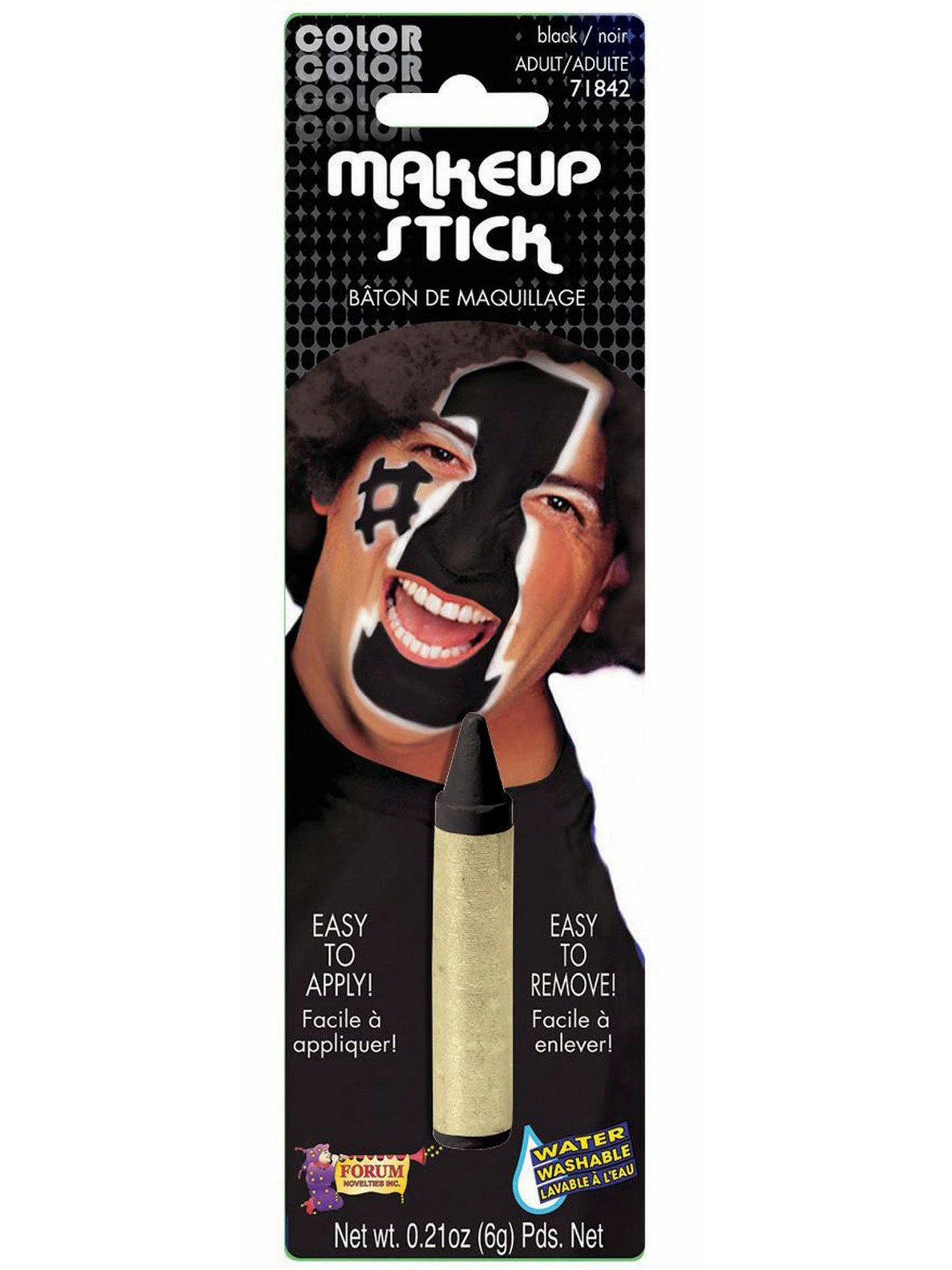 Whether you’re looking to spice up your costume or show your team spirit, this 0.21 oz Black Makeup Stick will get you from funny to frightening in minutes.