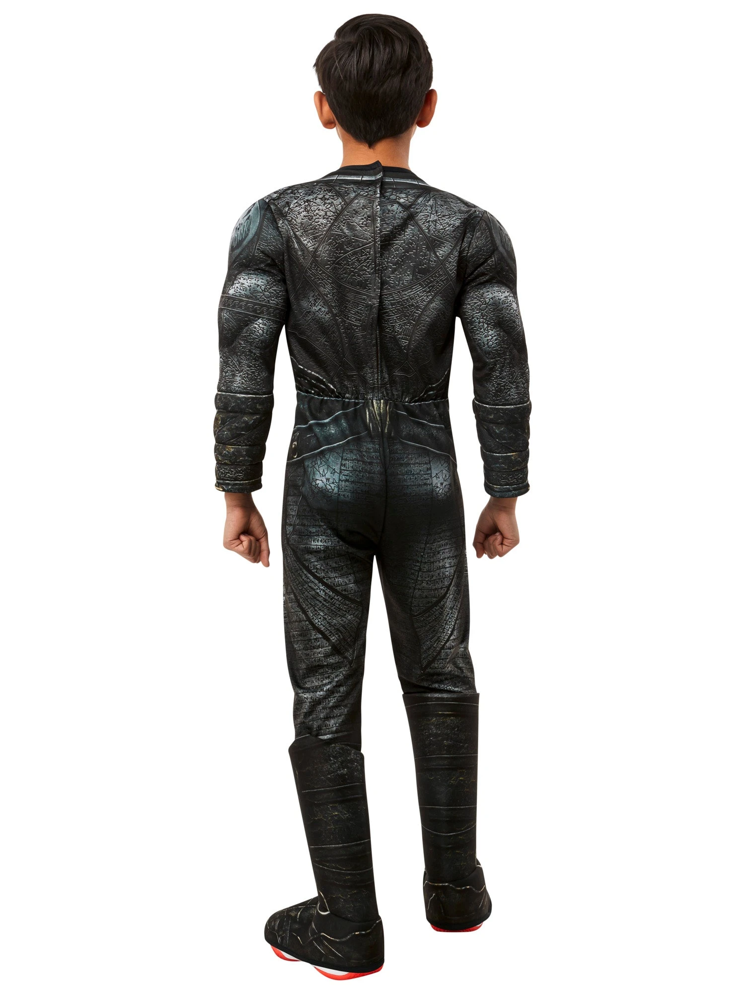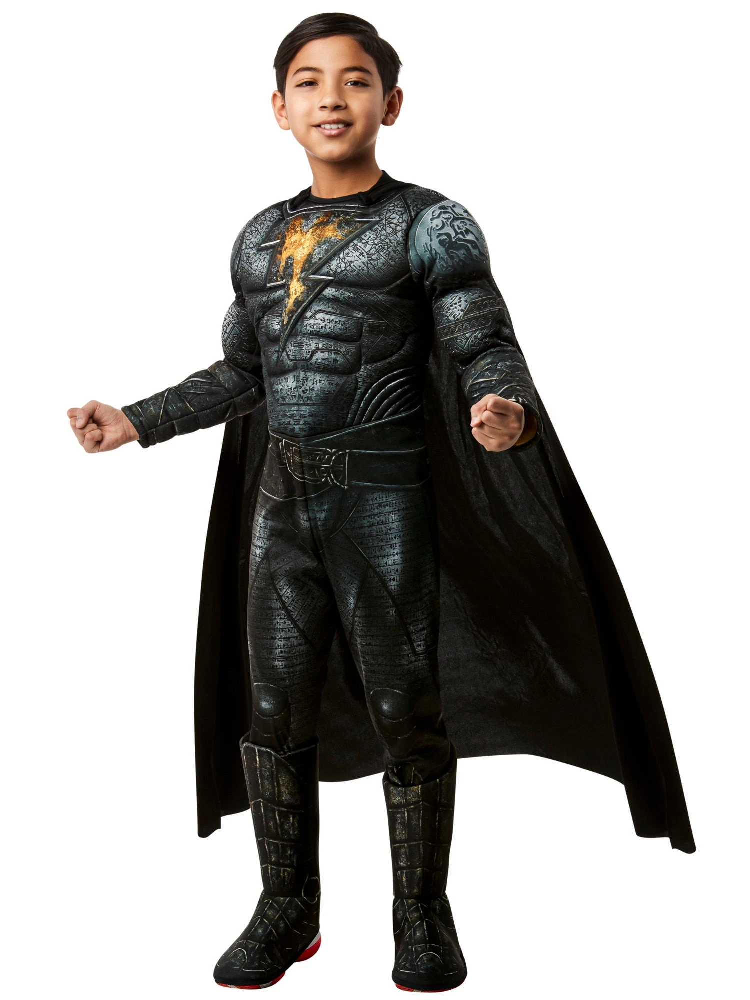 Shazam won’t have a chance against your kid this year when you dress them up in our Kids Deluxe Black Adam Costume. With this set, you will receive everything you need to turn your kid into the most feared villain around. With super strength, super speed and flight, as well as being able to channel thunder and lightning, your kid will be looking fearsome as ever wearing this fun muscle-padded jumpsuit with the attached boot covers and gauntlets, as well as Black Adam’s cape.