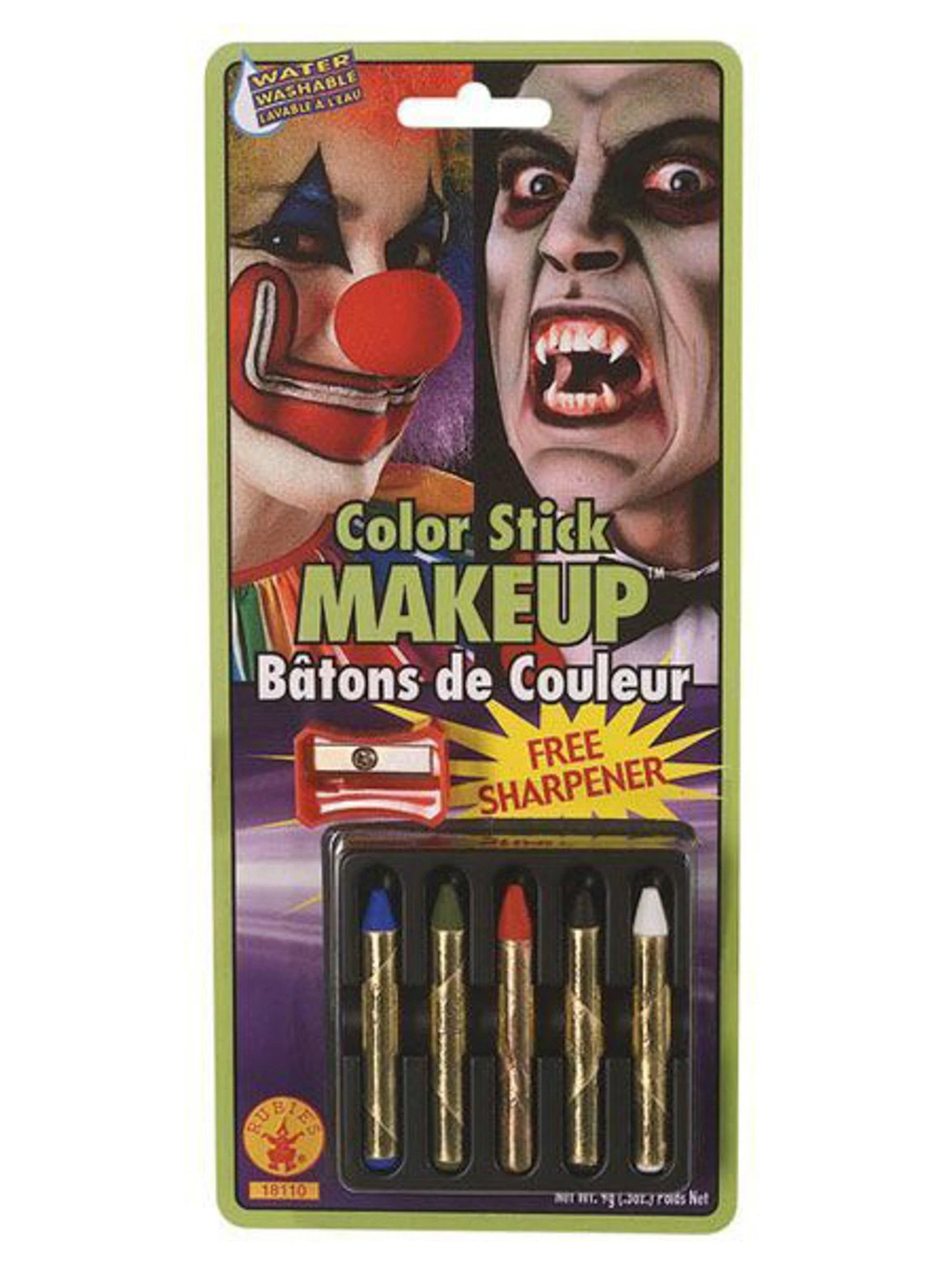 Using the Highlight Color Sticks Makeup, you can create the coolest looking designs that will accentuate your painted face. The kit comes with five different colors; black, blue, green, red, and white. Perfect for enhancing any Halloween costume.
