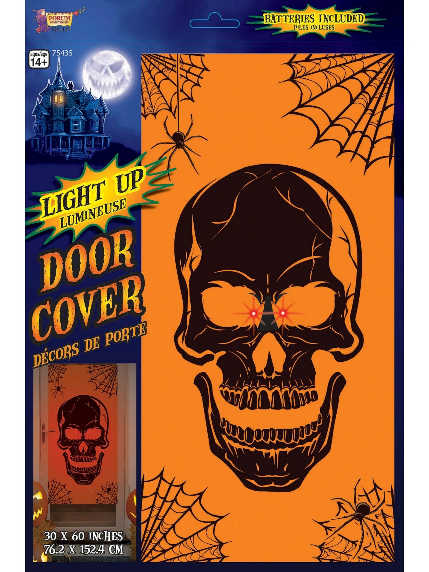 Decorating your house for Halloween this year? Then don’t forget to pick up our Skull Light Up Door Cover! With your purchase, you will receive a fun and spooky orange door cover featuring the print of a giant black skull as well as black spiderwebs and spiders in every corner. With its special light up design, you don’t want to miss out on this one. Buy your skull door cover today, and then scan our site for the rest of your Halloween decorations and props!