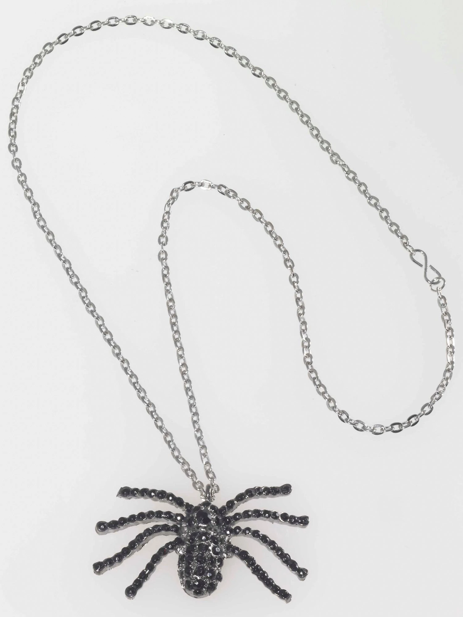 This creepy accessory is perfect for any Halloween activity. The Black Widow Necklace features a jeweled spider attached to a silver chain. Wear it as a festive accessory or with your costume. Your fantastic appearance will be admired by all.