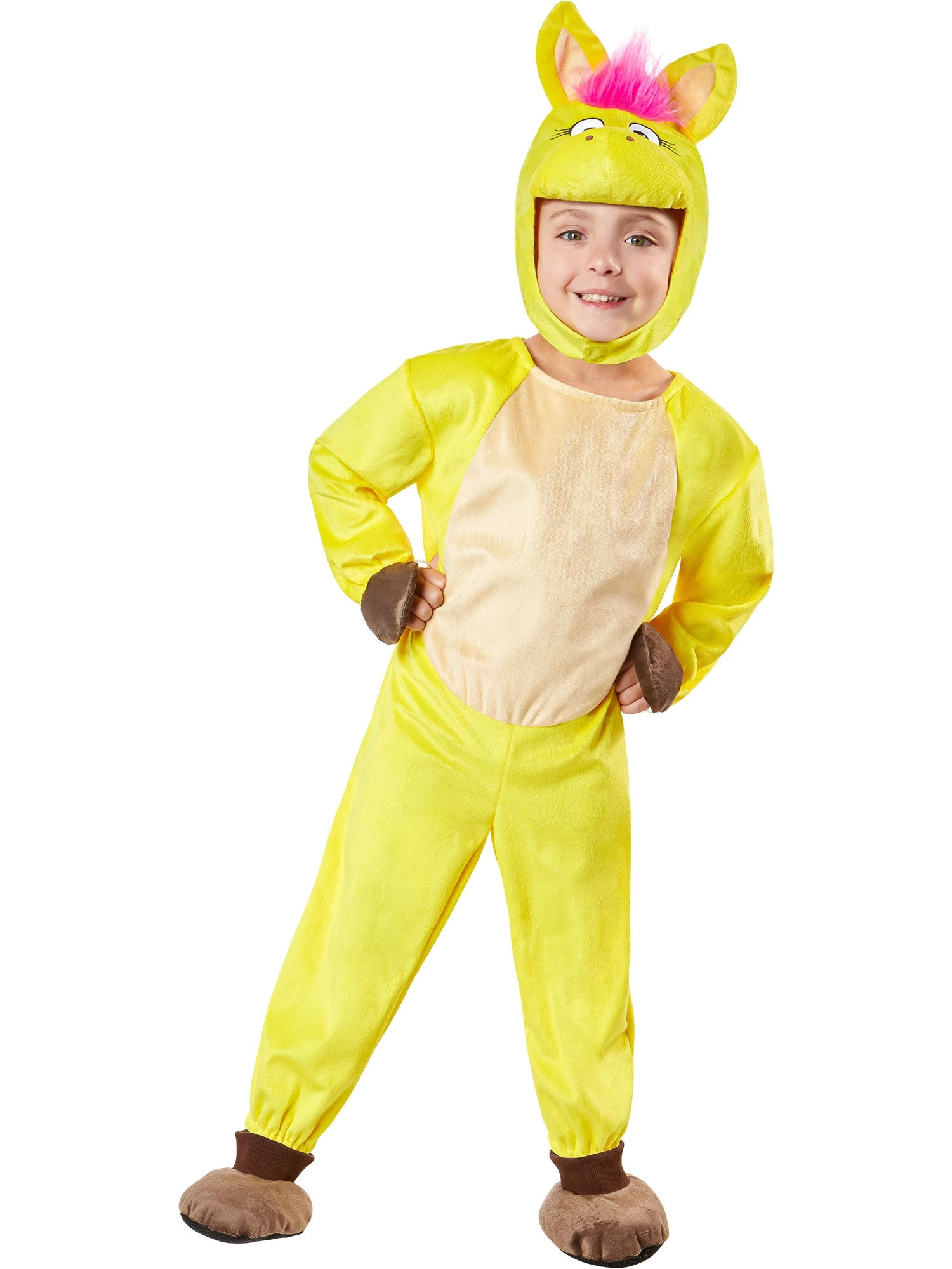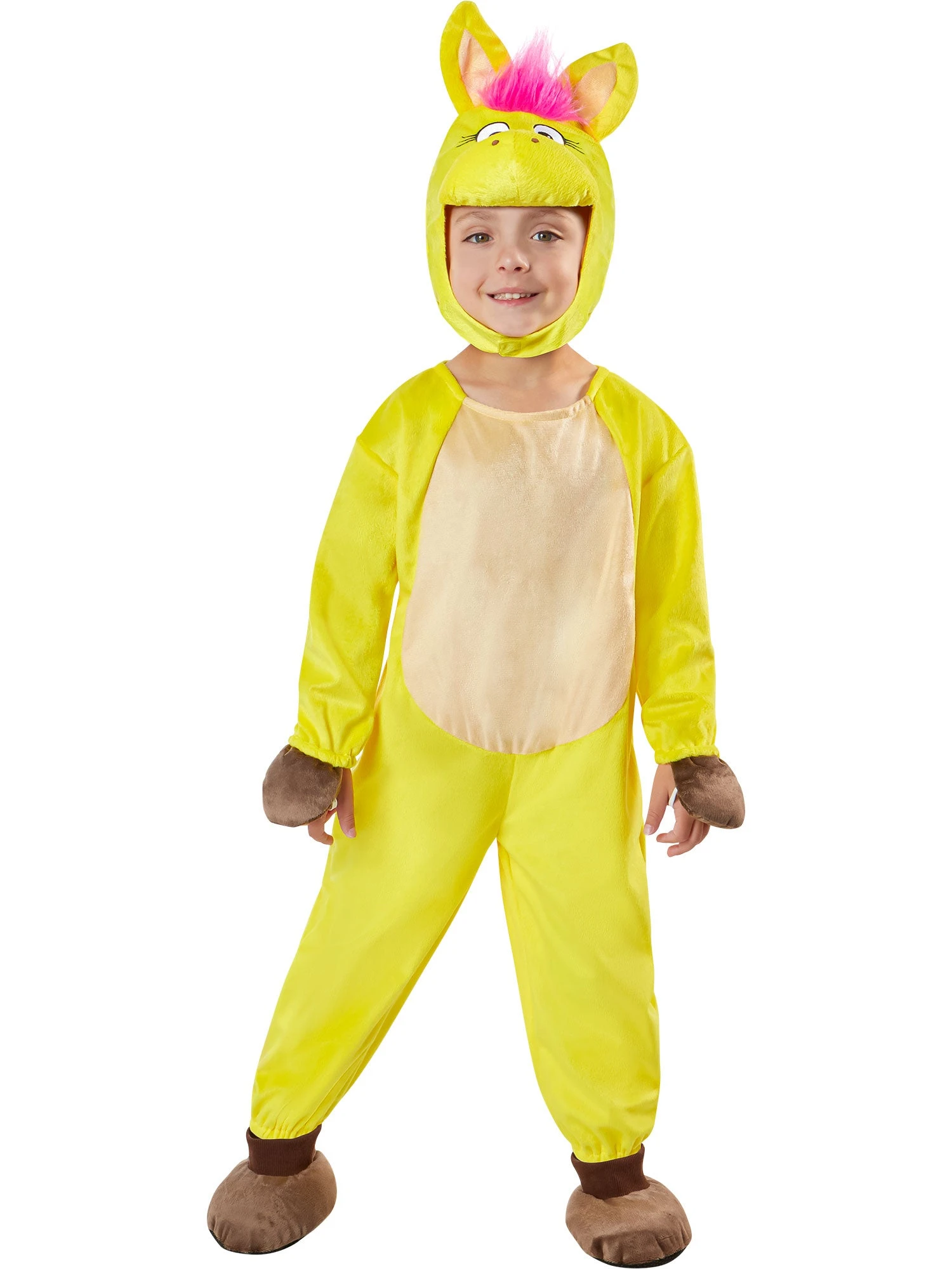 Your little one will be smiling from ear to ear this year when they’re all dressed up as their favorite donkey puppet in our Donkey Hodie Costume for Toddlers! With this set, you will receive everything you need to transform your tyke into the cutest donkey at the farm. Featuring a bright yellow jumpsuit with a beige belly section, a pair of adorable brown booties, and a Donkey Hodie eared headpiece with a pretty pink accent, you’re going to love dressing up your tot as this adorable television animal.