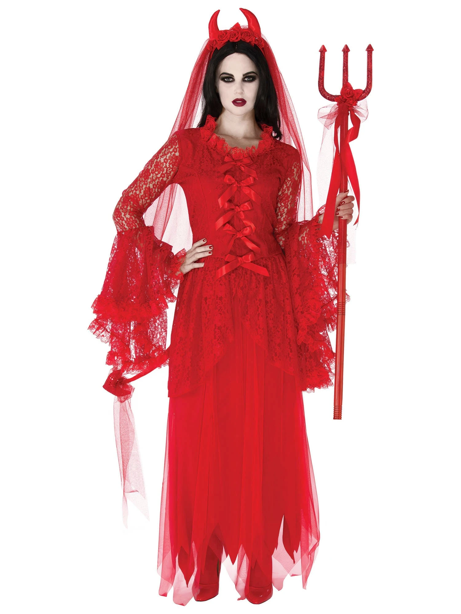 Be elegant and evil this Halloween with the Elegant Devil Pitchfork! This sparkly red pitchfork, which is adorned with red roses and red ribbon, will add a touch of grace to your hellish ensemble. Make sure you get devil horns and a devil tail to complete your sophisticated satanic look.