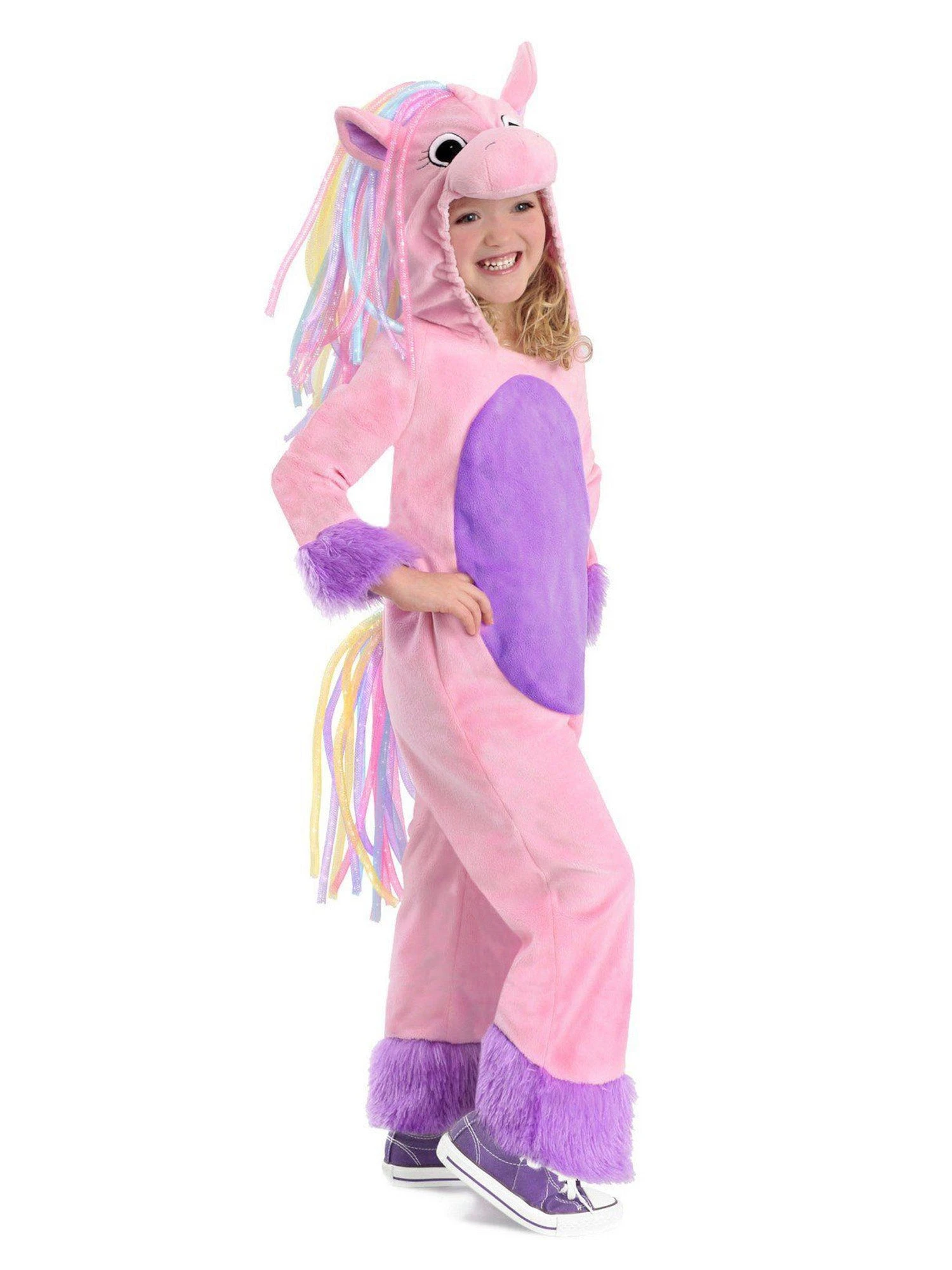 This Girl’s Colorful Rainbow Pony Costume is a beautiful costume that any little girl would enjoy, besides who doesn’t love ponies? The colors are bright and vibrant just like your princess. It can be worn during Halloween for trick or treating with her friends, a pony theme birthday party or a sleepover. It would make a great onesie for a pajama party! In a girl’s mind a pony is magical so it would be an honor to get the chance to dress as one.