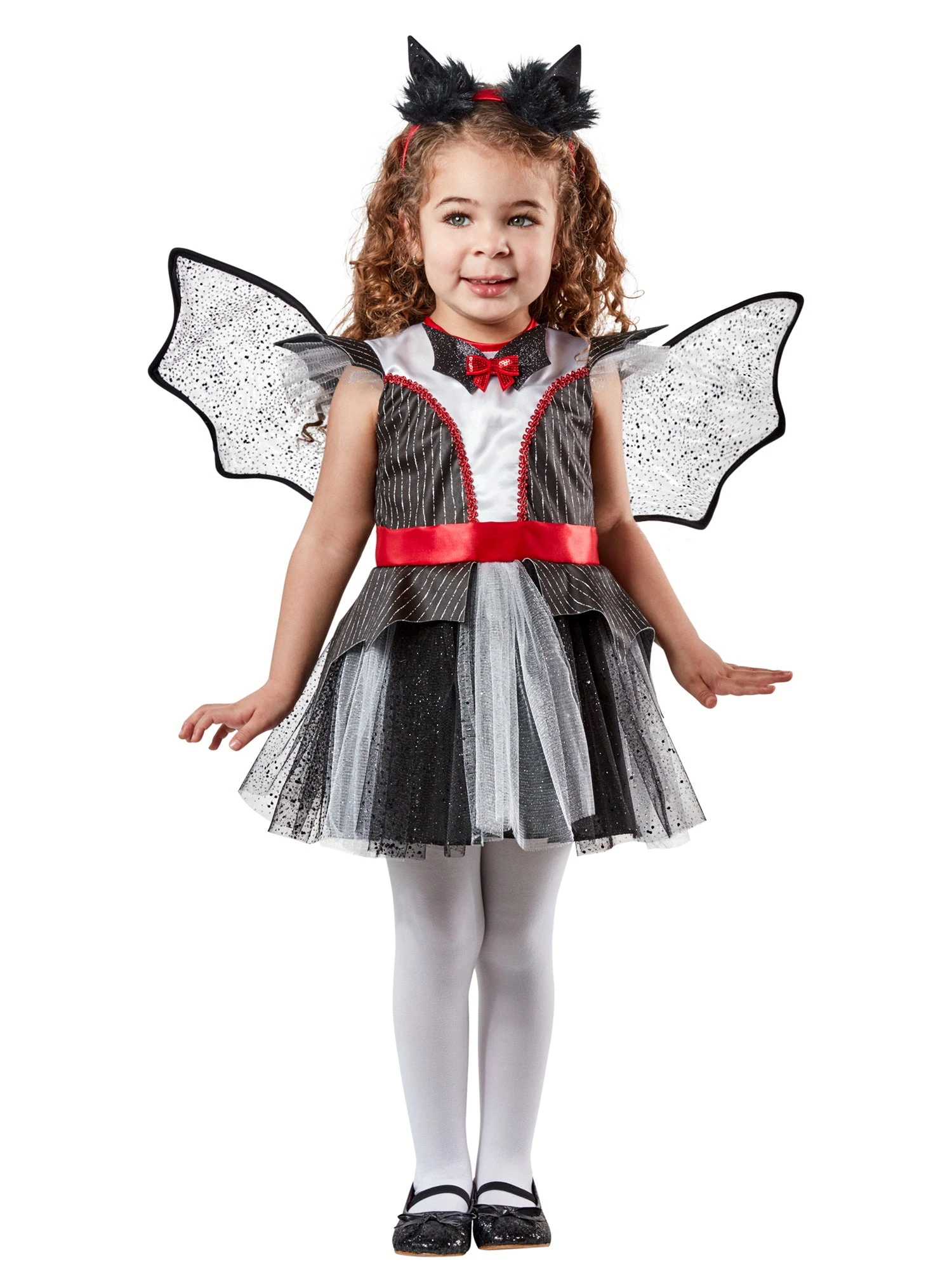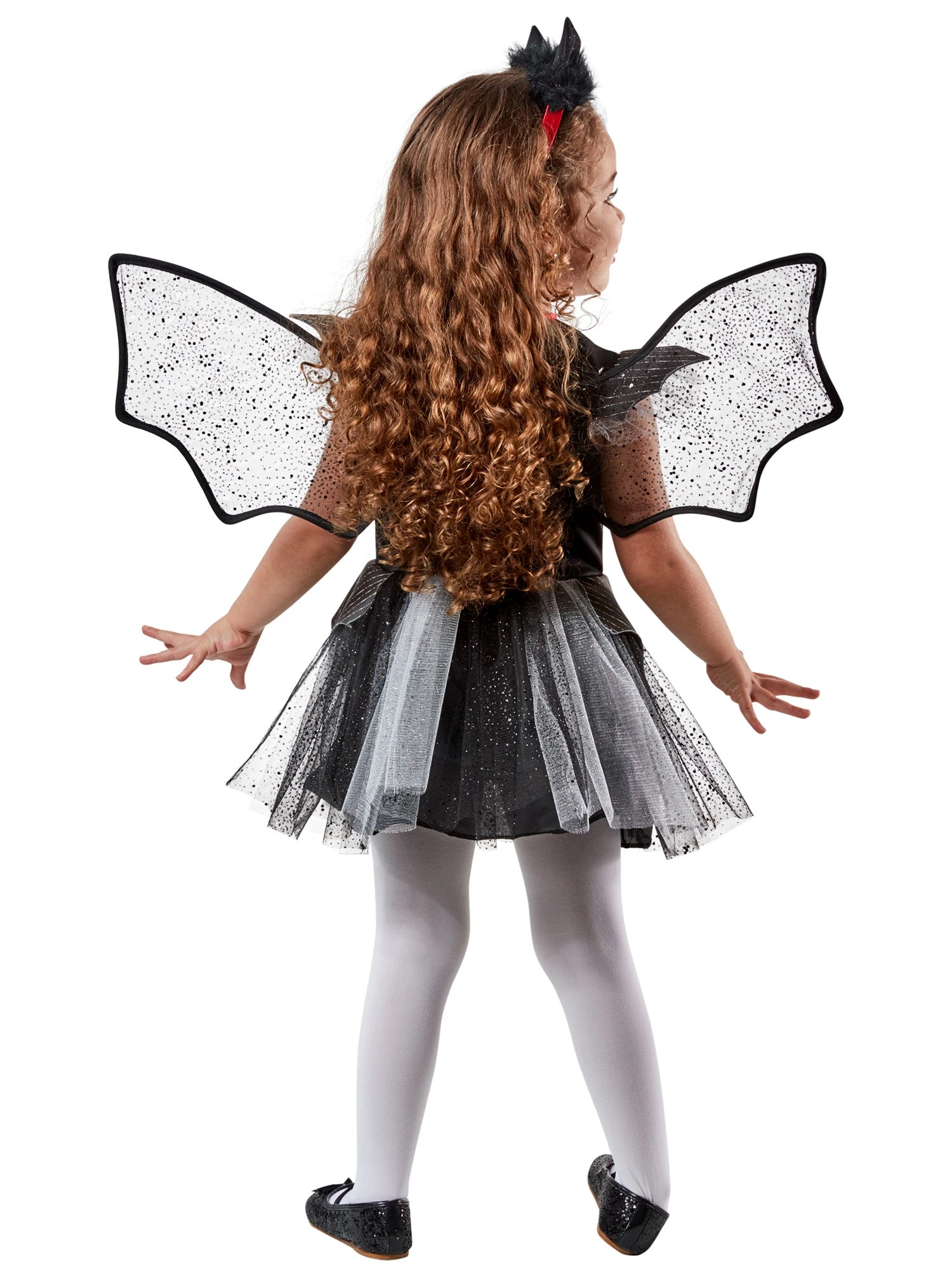 Watch your little one flutter from house to house in search of sweets and treats with our Girls Sparkly Bat Tutu Costume. This set includes everything you need to transform your child into the enchanting Halloween princess of bats and spooky critters. They’ll don a beautiful bat-themed dress, complete with a matching pair of wings and a stylish headband. Prepare for an unforgettable Halloween experience as your daughter shines in this one-of-a-kind outfit, capturing the essence of Halloween magic and wonder.