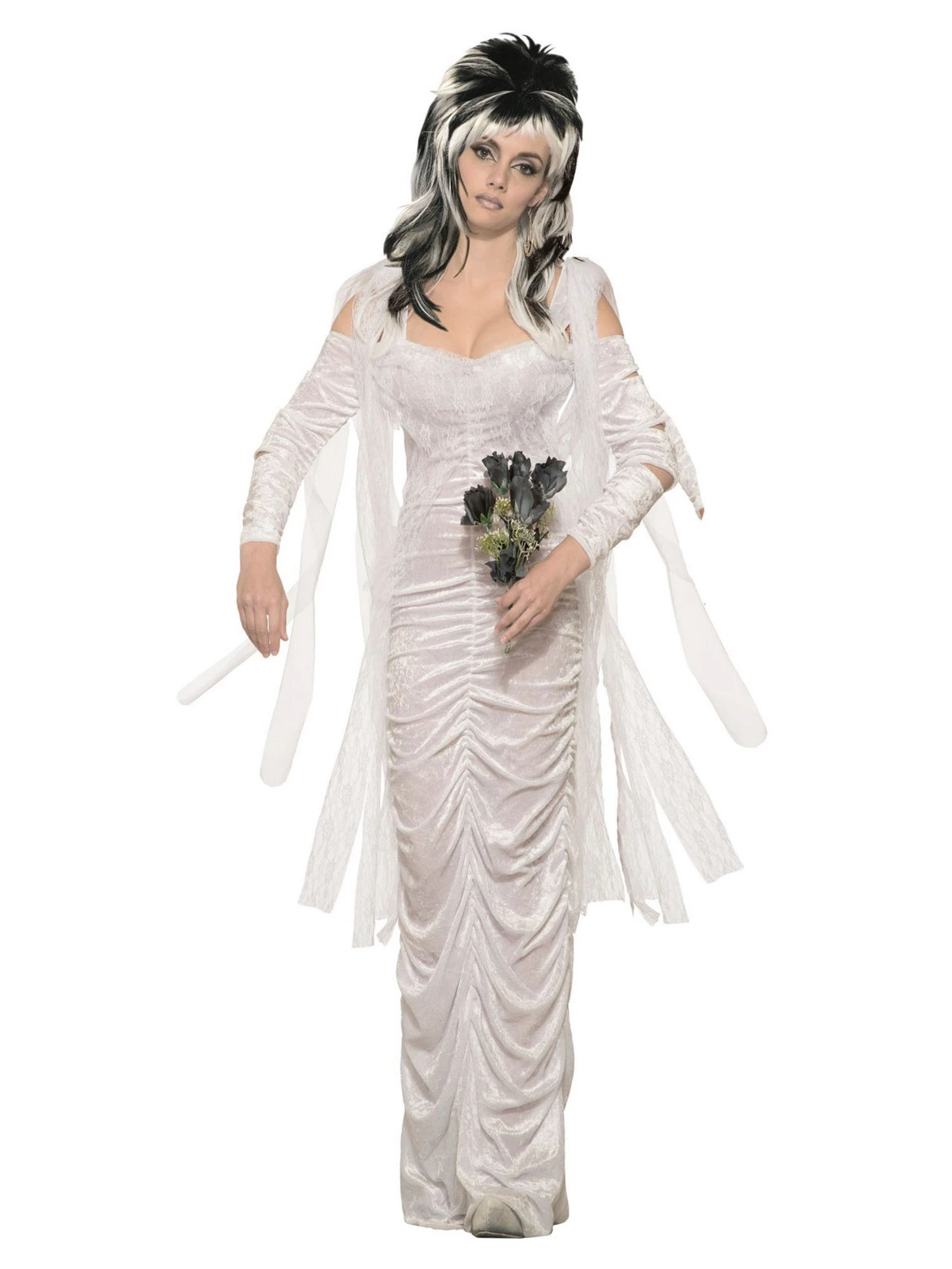 Creep people out this Halloween with the Haunted Bride Costume for Women. This one of a kind piece is perfect for all those pranksters out there who want to give people a scare. It also works perfect for a horror themed play, Halloween party, or another special occasion to give people goosebumps. People won?t be able to figure you out ? as you?ll be a beautiful bride walking down the street, yet scary with the unique dress on. Put on your best freaky make up and people might even question if you?re an actual haunted bride who came back to scare the living! You will look absolutely drop dead gorgeous, in a different way than those picture-perfect brides. Walk straight out of the cemetery and into your friends or family?s homes to give them a living nightmare with this fashionable haunted bride costume! It will remind everyone just how fun and silly you can be!