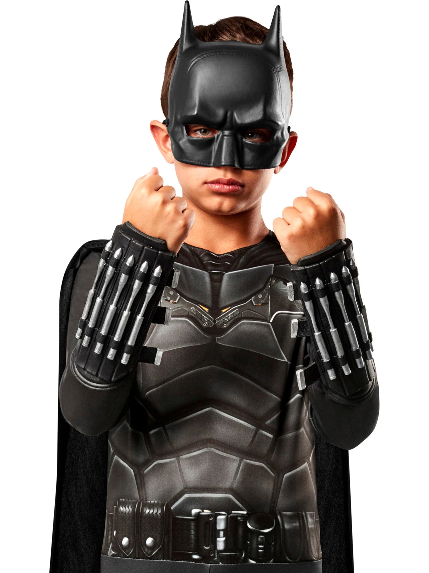 Does your kid want the ultimate Batman costume? Then you better not forget the essential accessories that will give them the power and protection to take down Gothams criminals. Make their costume look intimidating and tactical just like in the DC Comics movie, The Batman, with these officially licensed Kids The Batman Gauntlets. These black 3D arm gauntlets that have dart-like arrows strapped across the forearms and will make your childs Batman costume the best in all of Gotham!