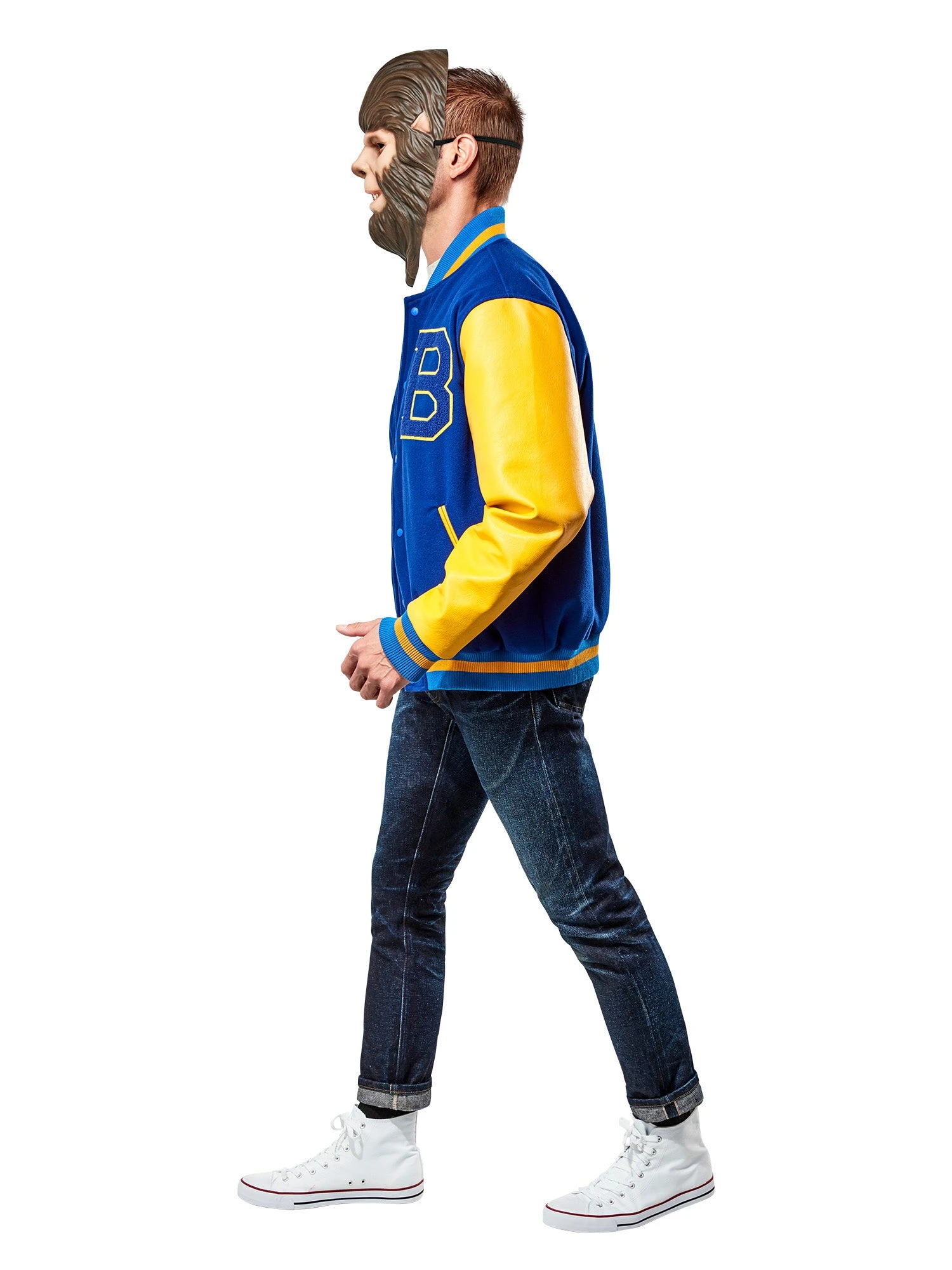 You’ll be channeling the 80’s this year when you show up to the party wearing our Adult Teen Wolf 1985 Jacket Costume. With this set, you will receive everything you need to become your average ordinary teen in high school, except when the moon is full of course! Featuring a blue and gold Varsity jacket that will pair perfectly with any werewolf mask, you’ll be ready to spook all your friends in a flash when you’re sporting this great look!