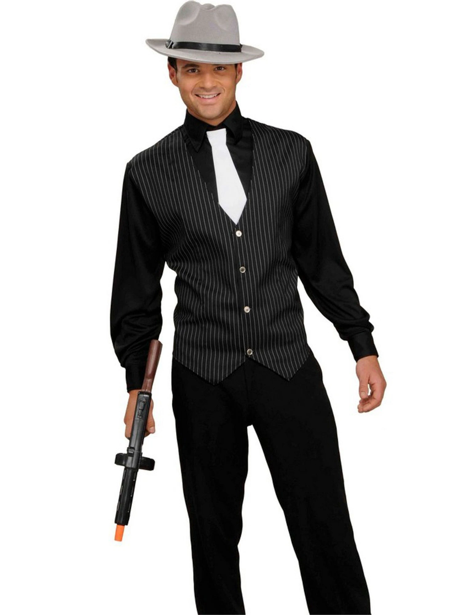 Stick em’ up! That’s what you may hear if the patrols catch up with your gang and try to pinch you, but you’re way slicker than that, especially dressed with this 20s Gangster Shirt, Vest, and Tie Adult that’s comprised of a black dress shirt front with a small white tie and a pinstriped vest over it.