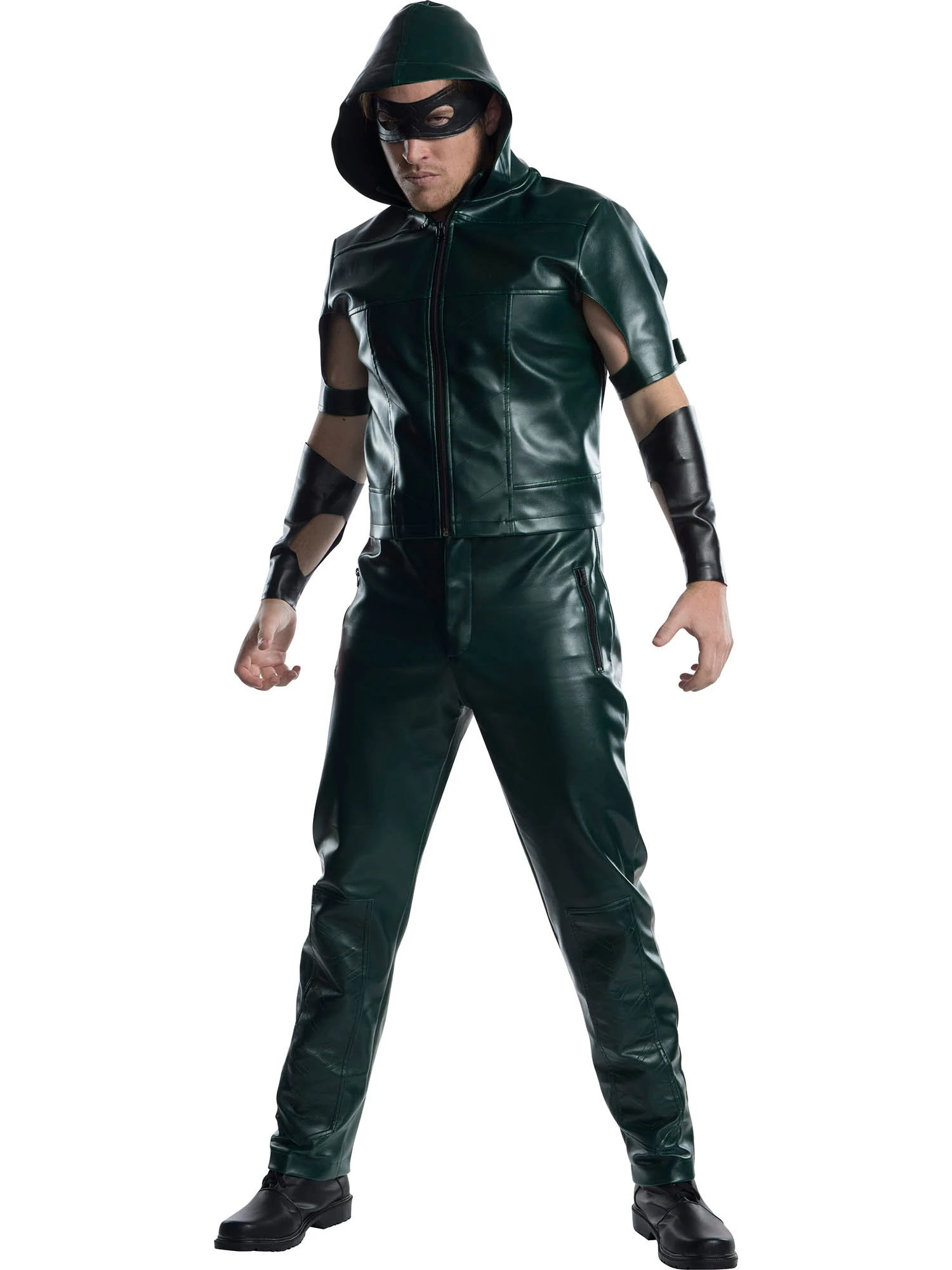 The Green Arrow is one of the coolest superheroes around. All decked out in green, this vigilante archery master fights crime using arrows, martial arts, and a variety of amazing technologies. When he?s not fighting crime like a boss, he?s living as Oliver Queen, the socially progressive billionaire playboy and politician. Is there any better superhero to be this Halloween than he? He?s like a modern day Robin Hood, all decked out with arrows of tear gas, smoke, nets and more. When you buy the Green Arrow Costume for Men, you?ll instantly feel like a fearless green warrior with a bow. Head to the party in this sleek and stylish get-up, and you?ll have everybody?s attention in a flash. Team up with some of your other superhero friends, and make it an awesome Marvel and DC themed Halloween! Pick up your Green Arrow Costume for Men today, and make this Halloween your most heroic one yet!