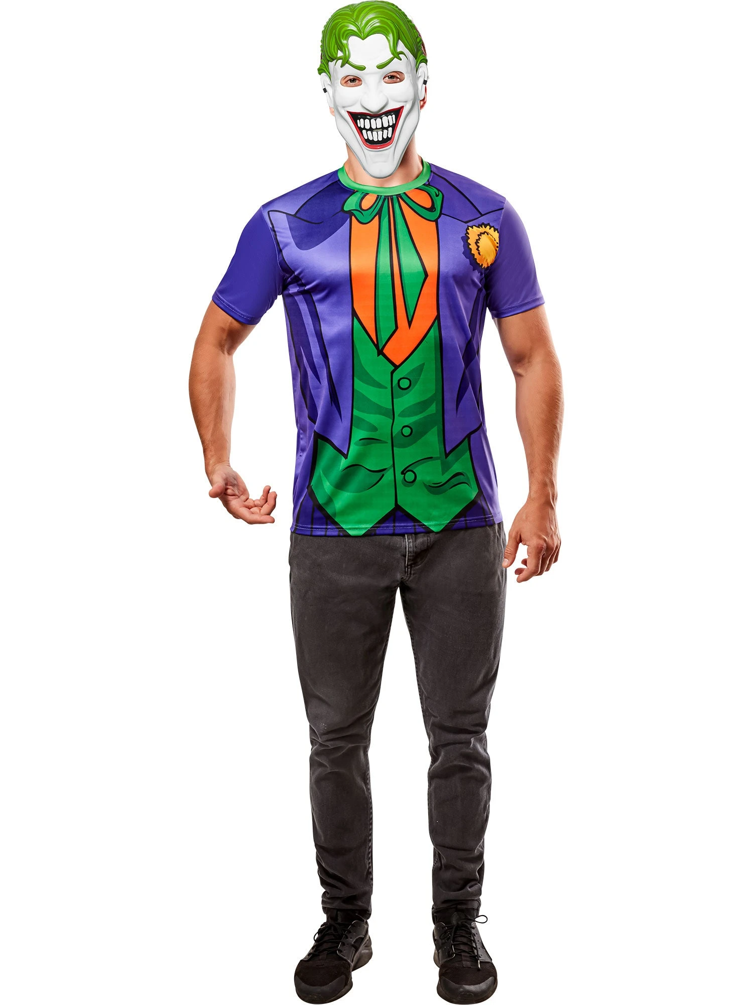 With this set, you will receive everything you need to get under Batman’s skin with ease. Featuring a fun Joker themed T shirt with a matching Joker 1/2 mask, you’ll have a blast setting traps, coming up with evil schemes and plans, and making life extremely difficult for your arch nemesis. Whether you’re teaming up with Harley Quinn and Poison Ivy for some evil mischief or just going at it solo, you’re going to love this Joker costume. Buy yours today, and then check our site for the rest of your DC Comic costume needs!
