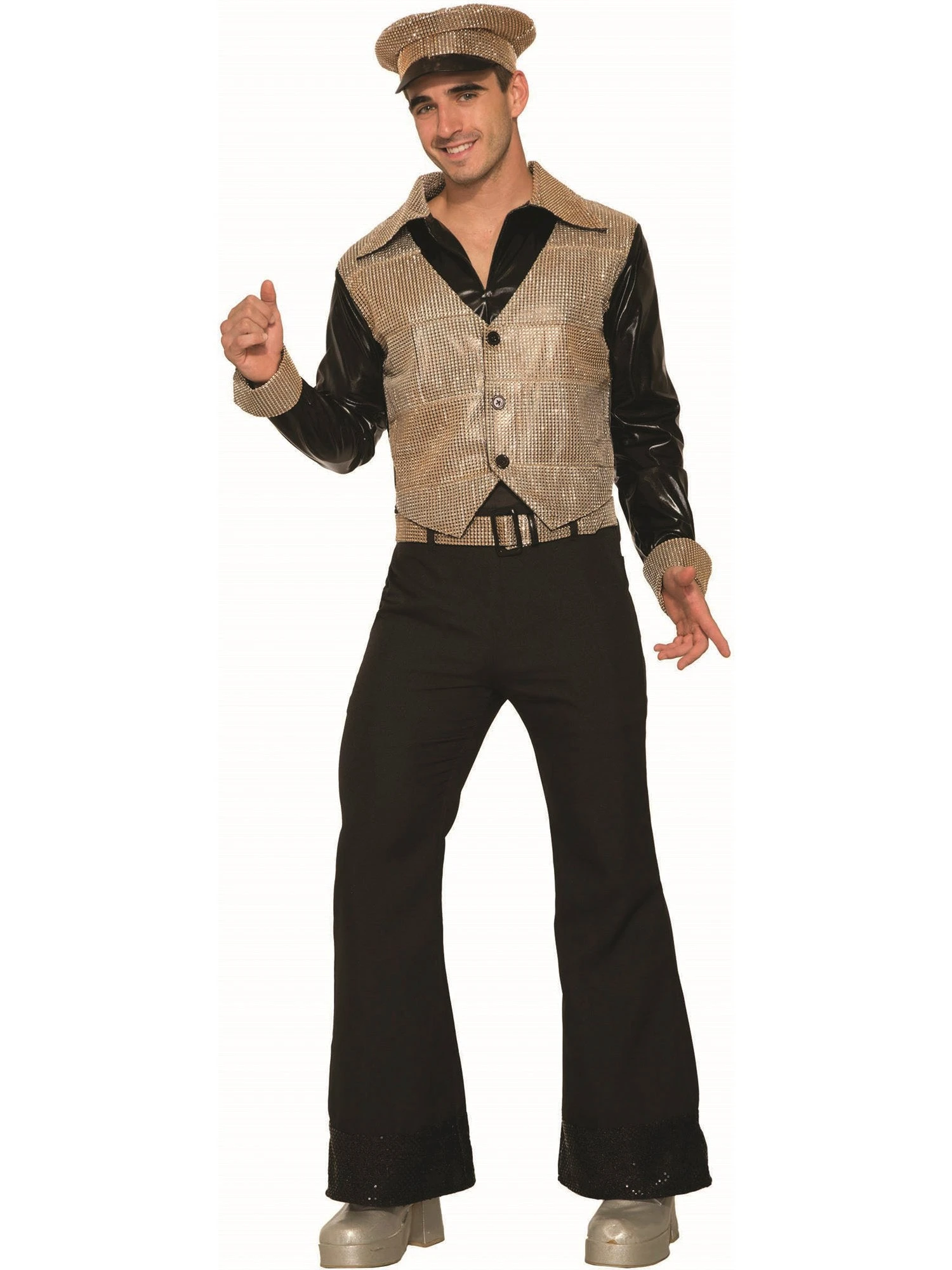 Unleash your inner disco diva with our Men’s Disco King Gold Costume! This stylish ensemble includes a sleek black and shimmering gold shirt with an attached vest and matching belt. Get ready to light up the dance floor and shine like a true star!