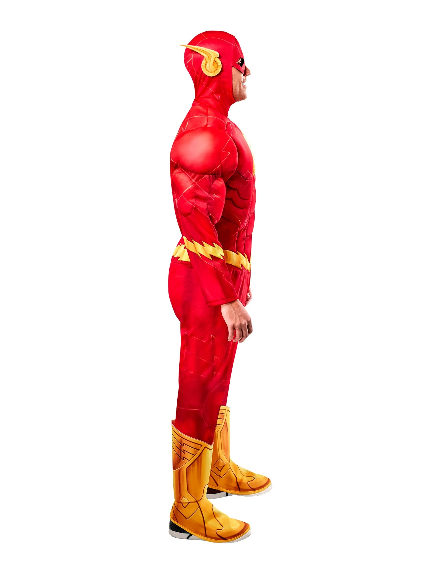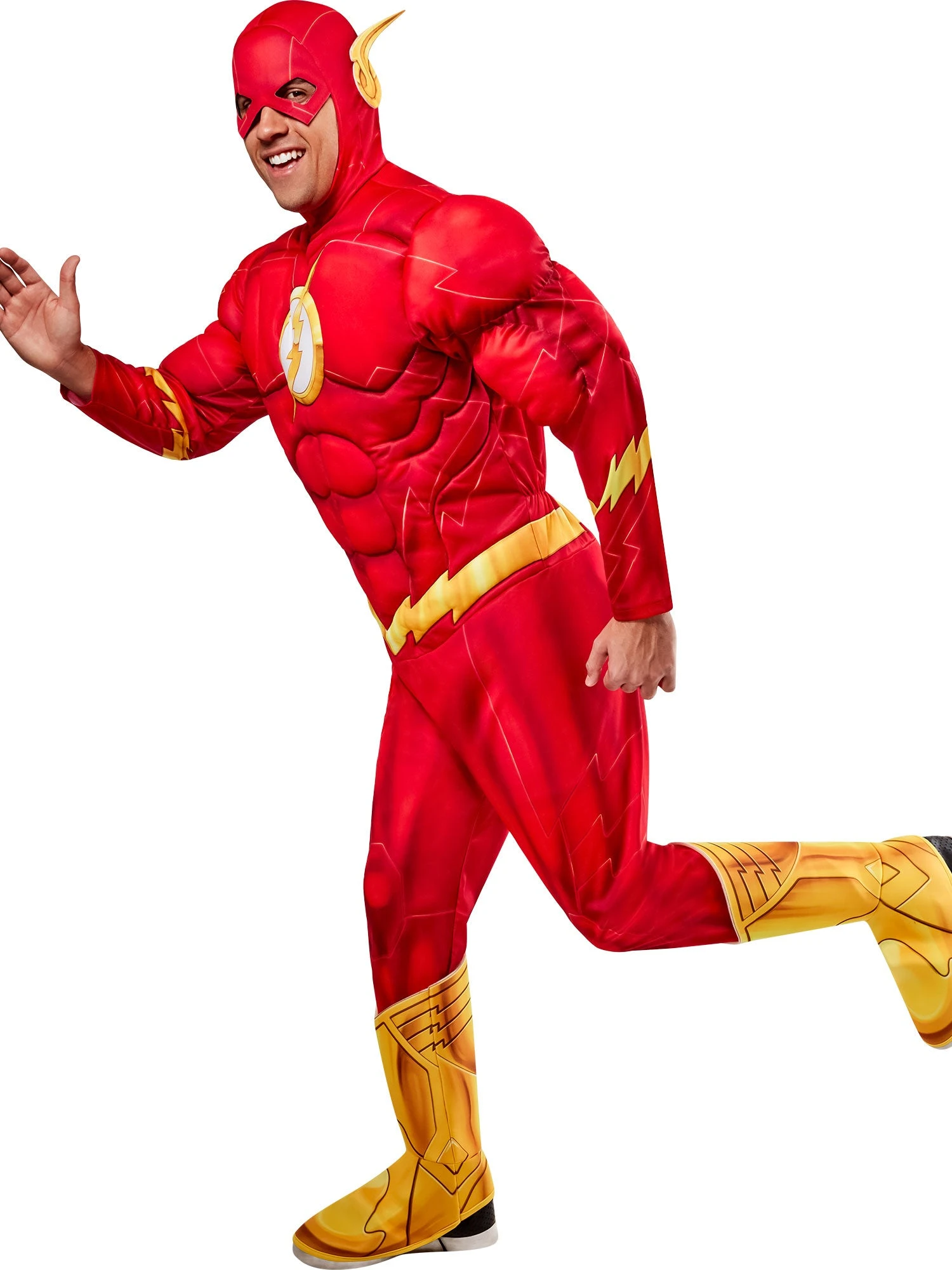 If you’re a huge fan of DC Comics legend the Flash, then you’re going to have the speediest time of our life sporting our Men’s Flash Muscle Chest Costume – Deluxe. With this set, you will receive everything you need to give all your foes a barrages of punches and kicks before they even have a chance to blink. Featuring a bright red jumpsuit with yellow accents, a pair of yellow shoe covers, and a matching Flash mask, you can do no wrong with this killer superhero wear.