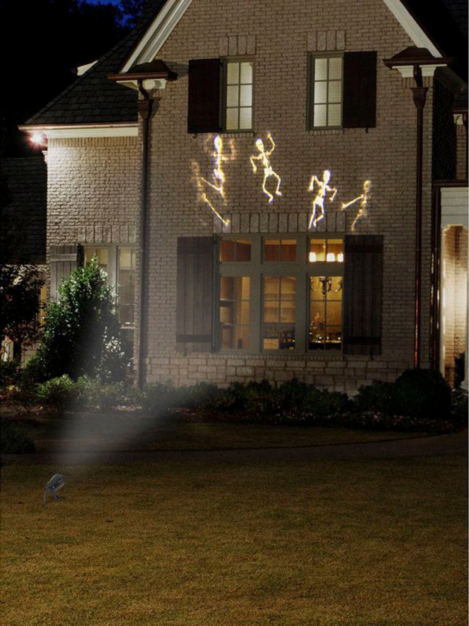 Thrill your neighbors. Turn your front yard into something haunted! Use this projection light. Dancing skeletons will be projected all over the front of your house. Freak everyone out with this eerie skeleton party!