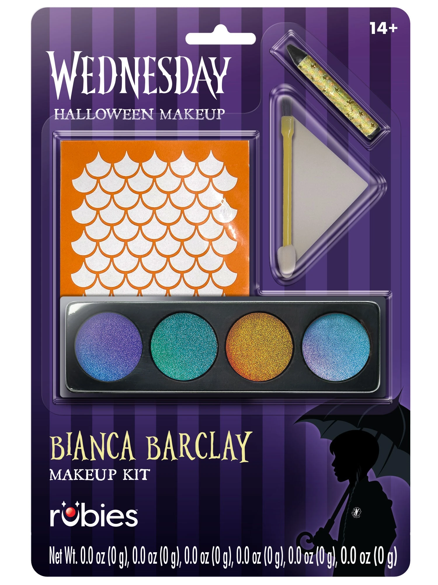 You’ll be swimming through the ocean in style this year when you’re all dolled up with our Wednesday Bianca Barclay Makeup Set. If you’re dressing up as the cool, popular, and competitive Bianca Barclay, then you’ll be singing old siren songs to all your friends before the night is through. As leader of the siren clique, Bianca certainly knows a thing or two about casting enchanting melodies out into the world. With legs that can easily turn into a mermaid tail, you’re going to take a real dive into this lovely aquatic character’s vibe with this crafty set of makeup.