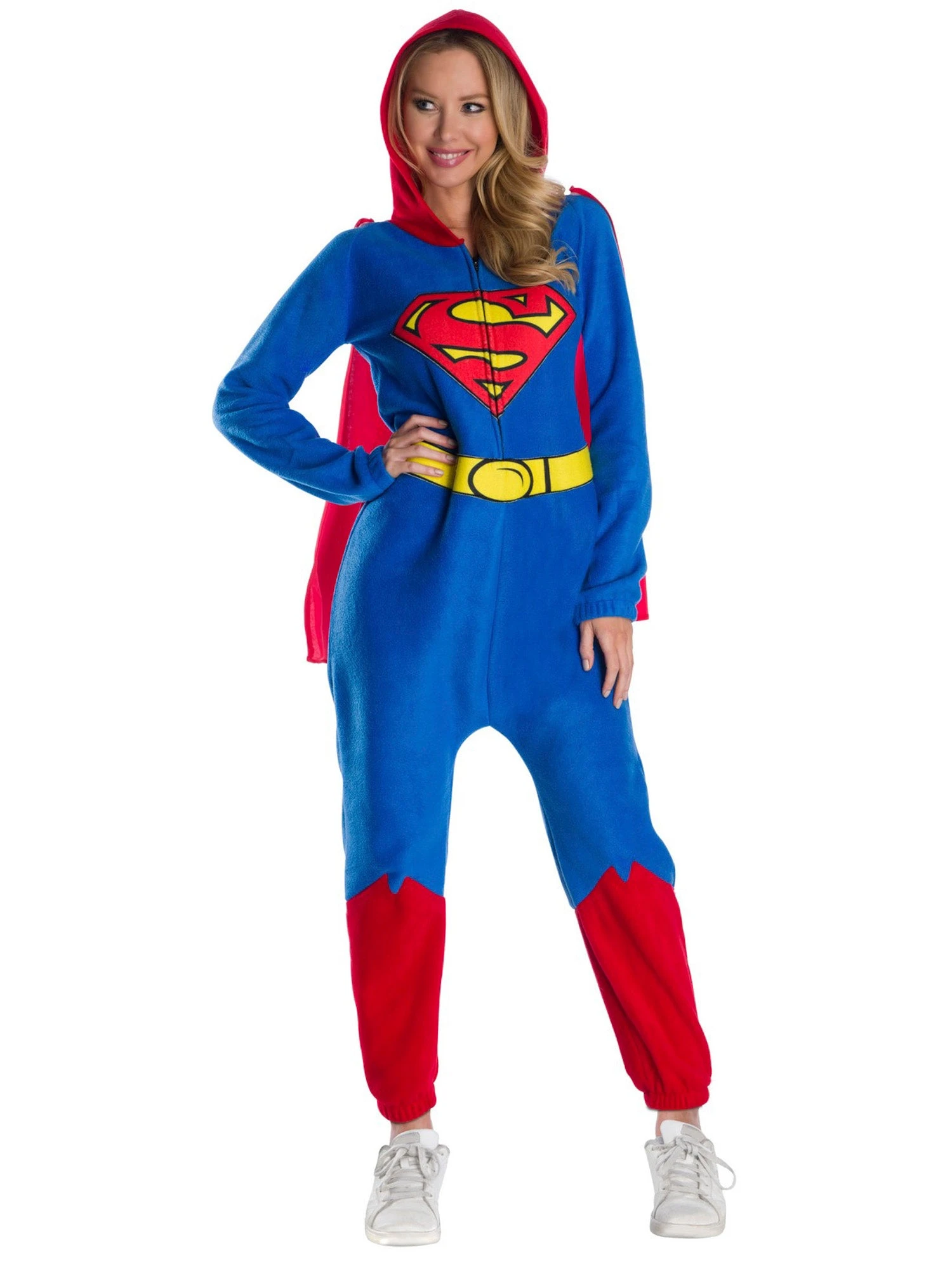 Go for a look that is cozy and stylish this year with our Women’s DC Comics Superman Zipsters Costume. With this set, you will receive everything you need to show your love for Superman all while feeling like you never left the couch. Featuring a blue and red Superman hooded jumpsuit with a big logo on the chest, as well as a red cape, you’re never going to want to take this ridiculously comfy costume off.