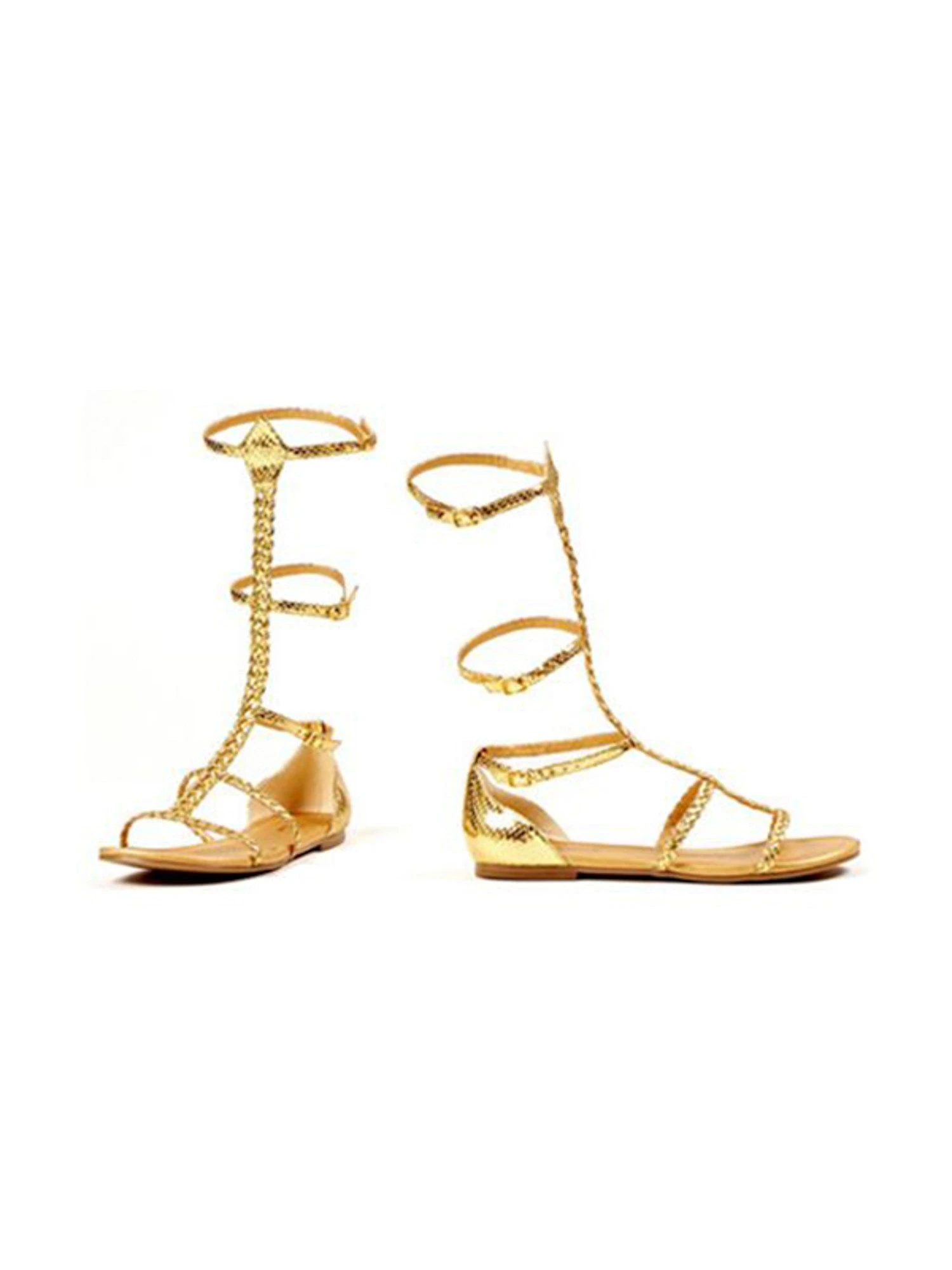 Match the style of the Ancient Greeks and Ancient Egyptians with our Women’s Egyptian and Greek Gold Sandals. These stunning gold sandals feature a regal style and design, with straps up to the calves. These elegant and glittery gold sandals can add a great accent to your Cleopatra or Ancient Greek themed costume.