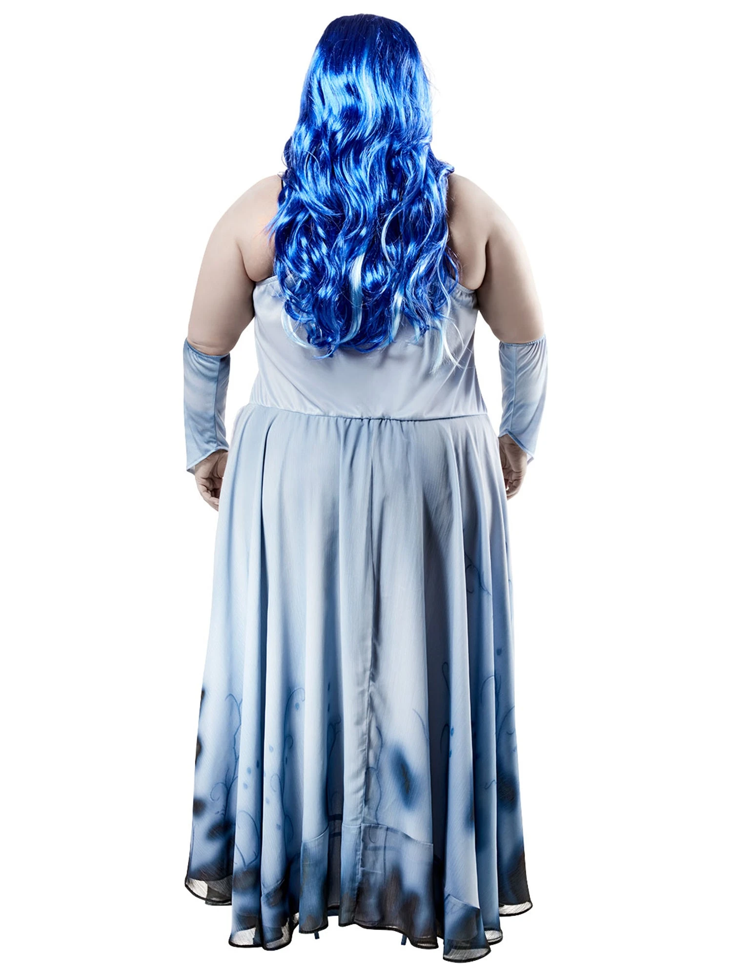Embrace the dark romance this Halloween with the officially licensed Women’s Plus Size Corpse Bride Emily Costume. Step into the eerie yet enchanting world of Tim Burton as Emily. This costume perfectly captures Emily’s gothic charm featuring her signature tattered wedding gown, delicate lace, and the iconic pale blue hue, complete with a dramatic veil and gauntlets, you’ll look straight out of Tim Burton’s darkly romantic world. Perfect for Halloween, cosplay events, or themed parties, this stunning costume transforms you into the beloved, beautiful, and slightly spooky Emily. Order now and bring your favorite gothic bride to life