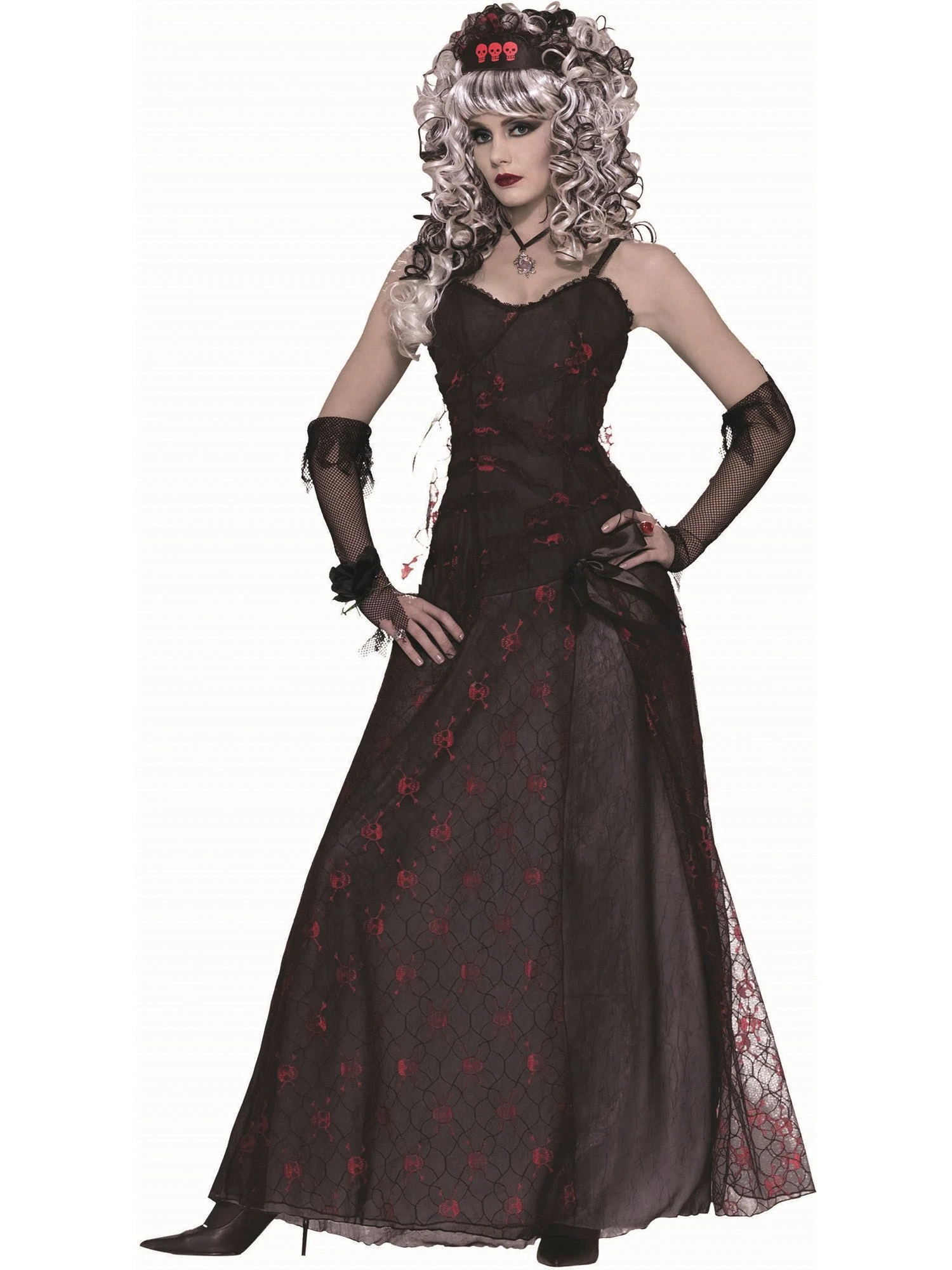 Get ready to take “undead glamour” to the next level with the Women’s Prom Zombie Costume! Featuring a black dress with red skull detailing with a matching headband. This eerie yet stylish ensemble transforms you into the ultimate undead prom queen, perfect for Halloween parties, horror-themed events, and spine-chilling costume contests.