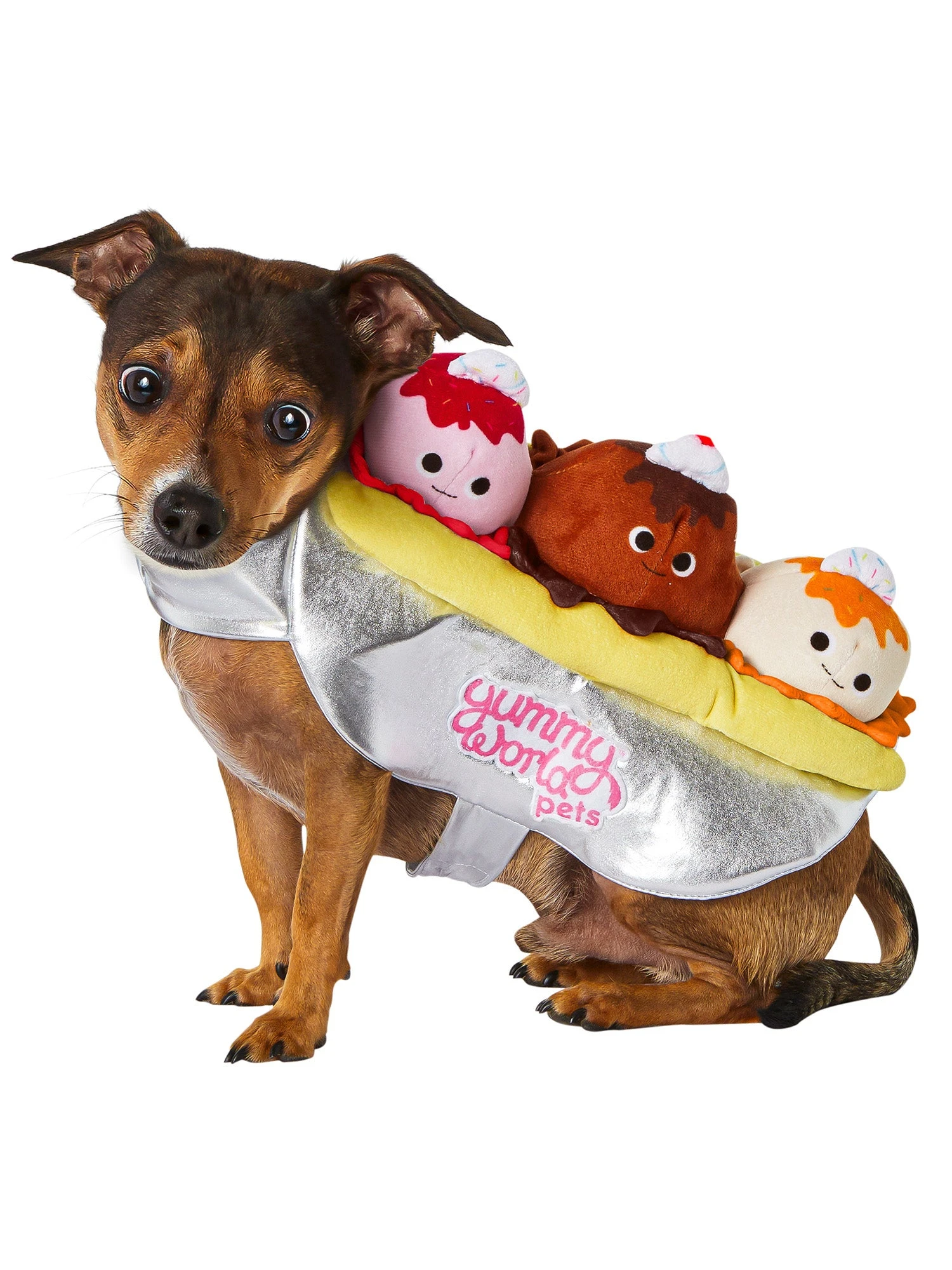 Indulge in a delectable dose of cuteness this year as your pup becomes the epitome of sweetness in the Yummy World Banana Split Pet Costume by Kidrobot. Embrace the mouthwatering allure of a classic banana split sundae, complete with velvety ice cream, bananas, cherries, and tantalizing toppings. With this enticing costume, your furry friend will capture hearts and imaginations, embodying the essence of everyone’s favorite dessert.
